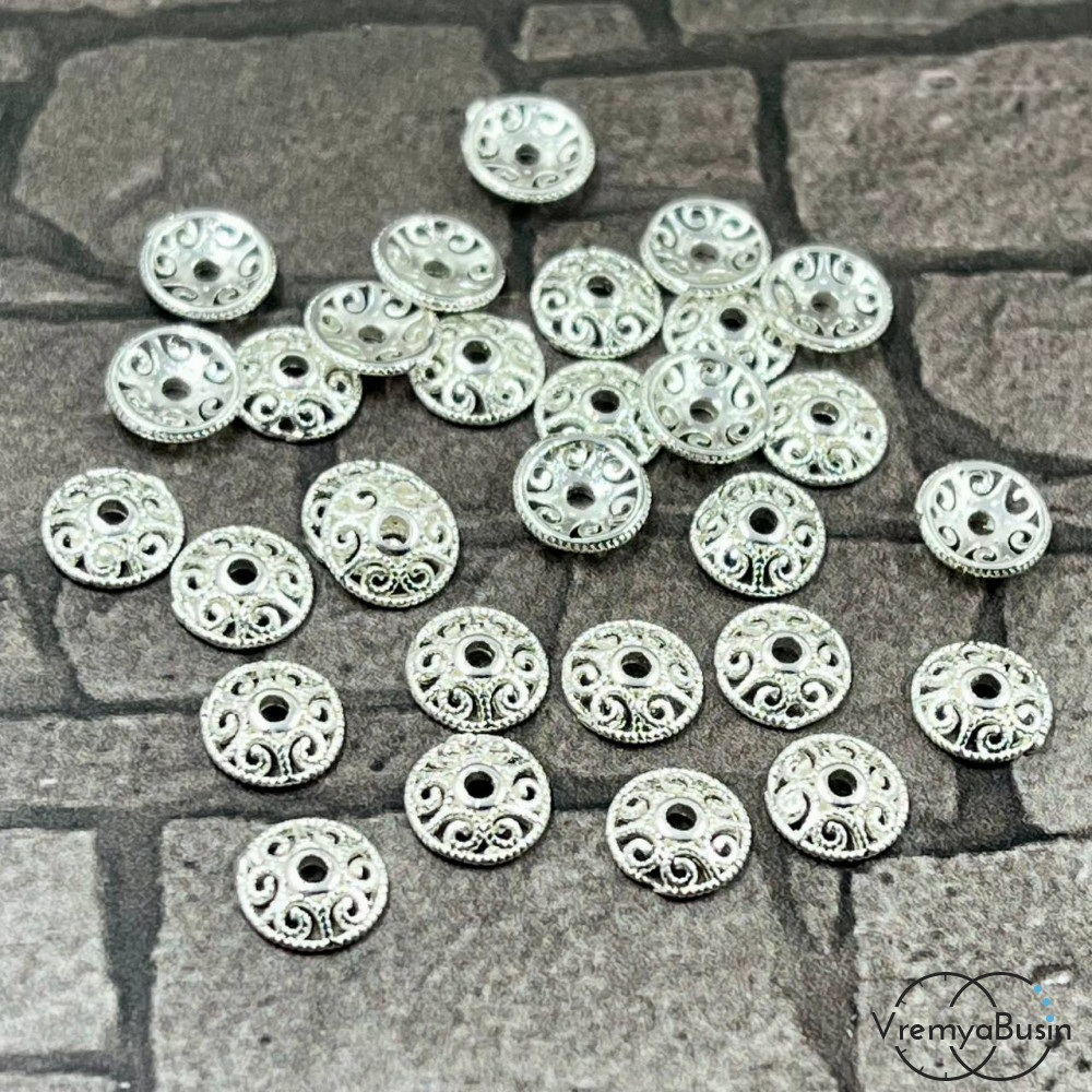 Шапочки для бусин 6 мм, латунь с родиевым покрытием (10 шт.)
