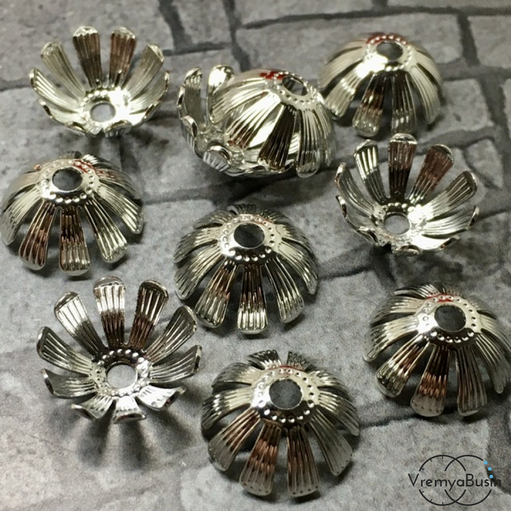 Шапочки для бусин 5х12 мм, латунь с родиевым покрытием (10 шт.)