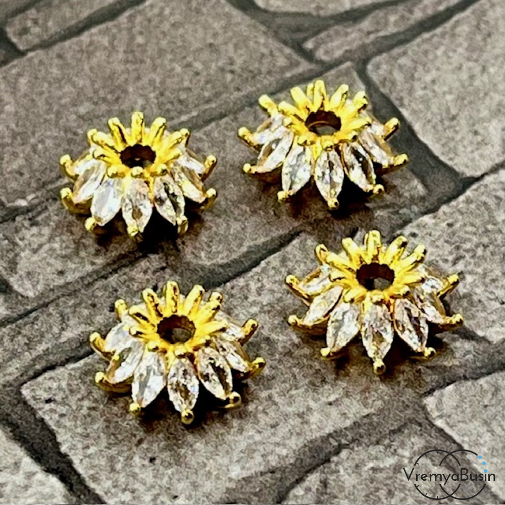 Шапочки для бусин с фианитами, 11х5 мм, латунь с позолотой (1 шт.)