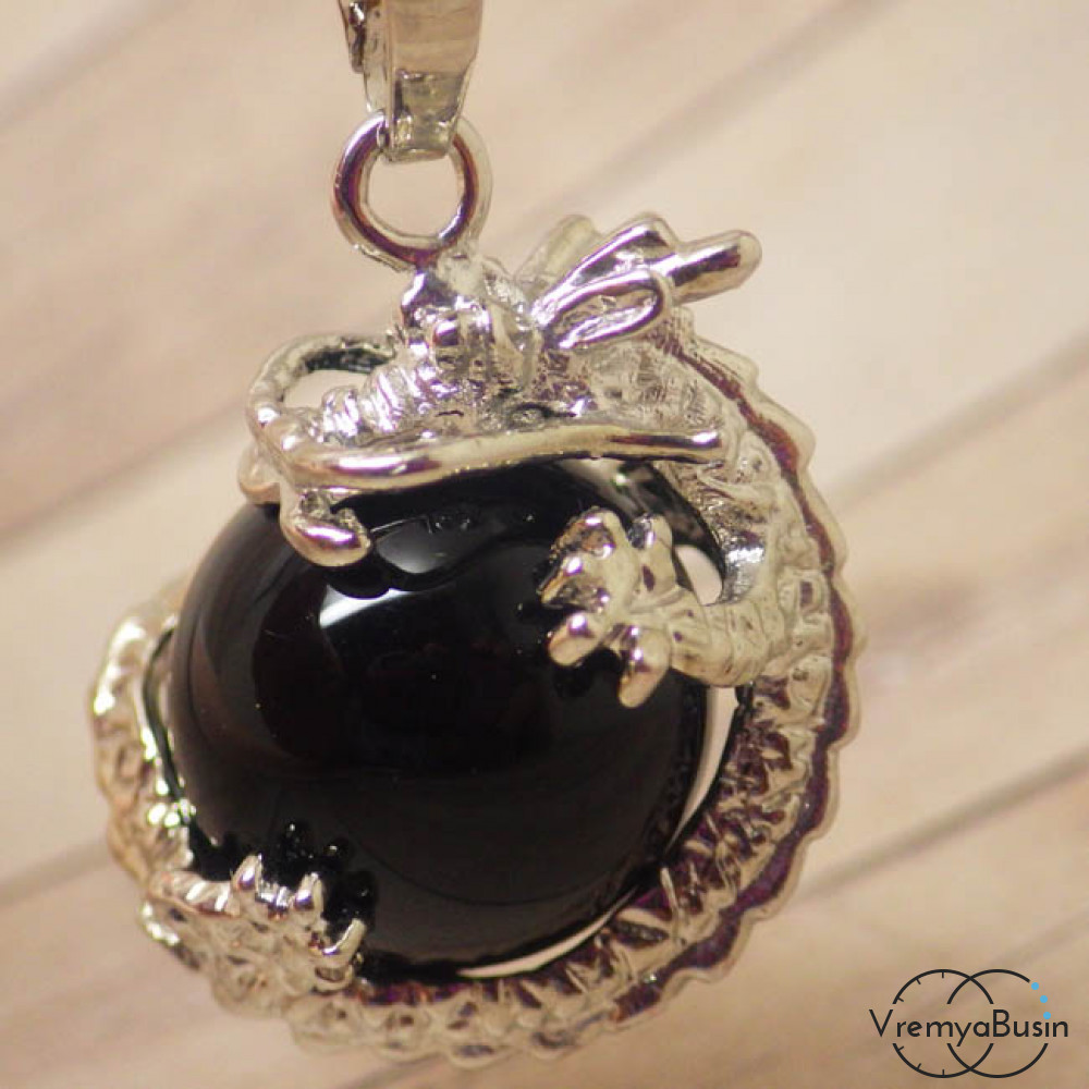 Агат чёрный, кулон из камня "Дракон" с шаром 16 мм (1 шт.)