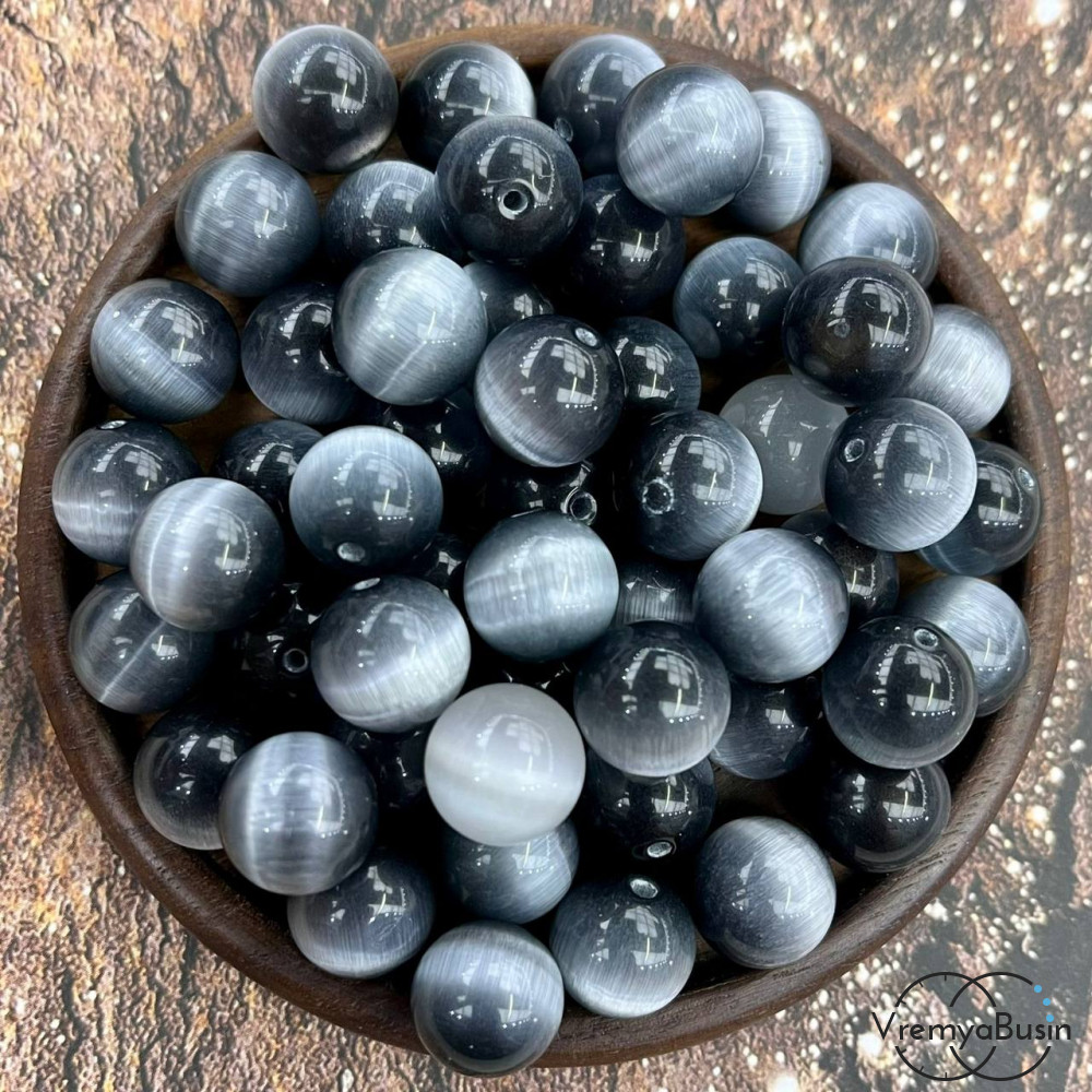 • Кошачий глаз синт., полупросверленные бусины шарики 12 мм (1 шт.)