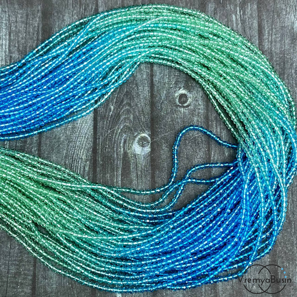 Бусины шарики из стекла с переходом цвета, 2 мм (нить, ок. 200 шт.)