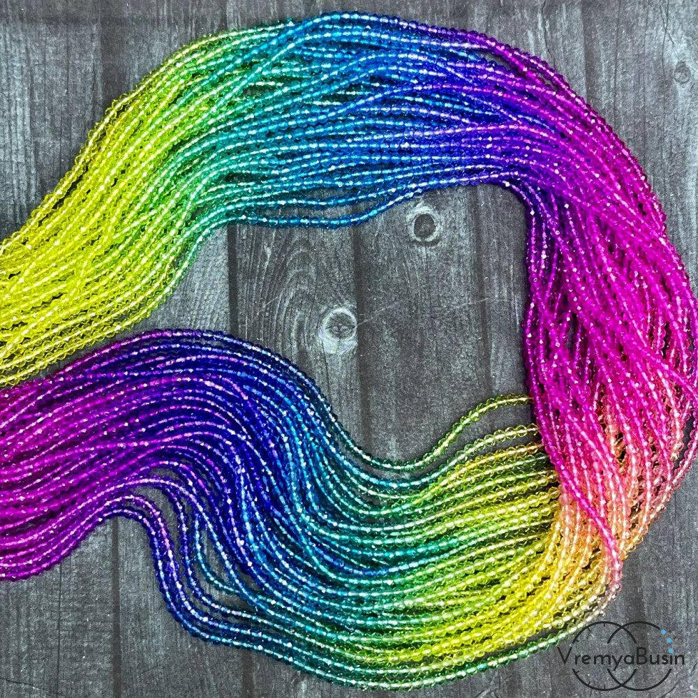 Бусины шарики из стекла с переходом цвета, 2 мм (нить, ок. 200 шт.)
