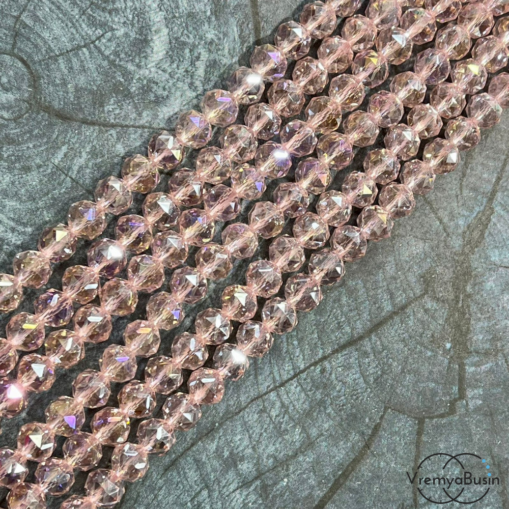 Бусины шарики из стекла с треугольной огранкой, 8 мм (1/2 нити, ок. 24 шт.)