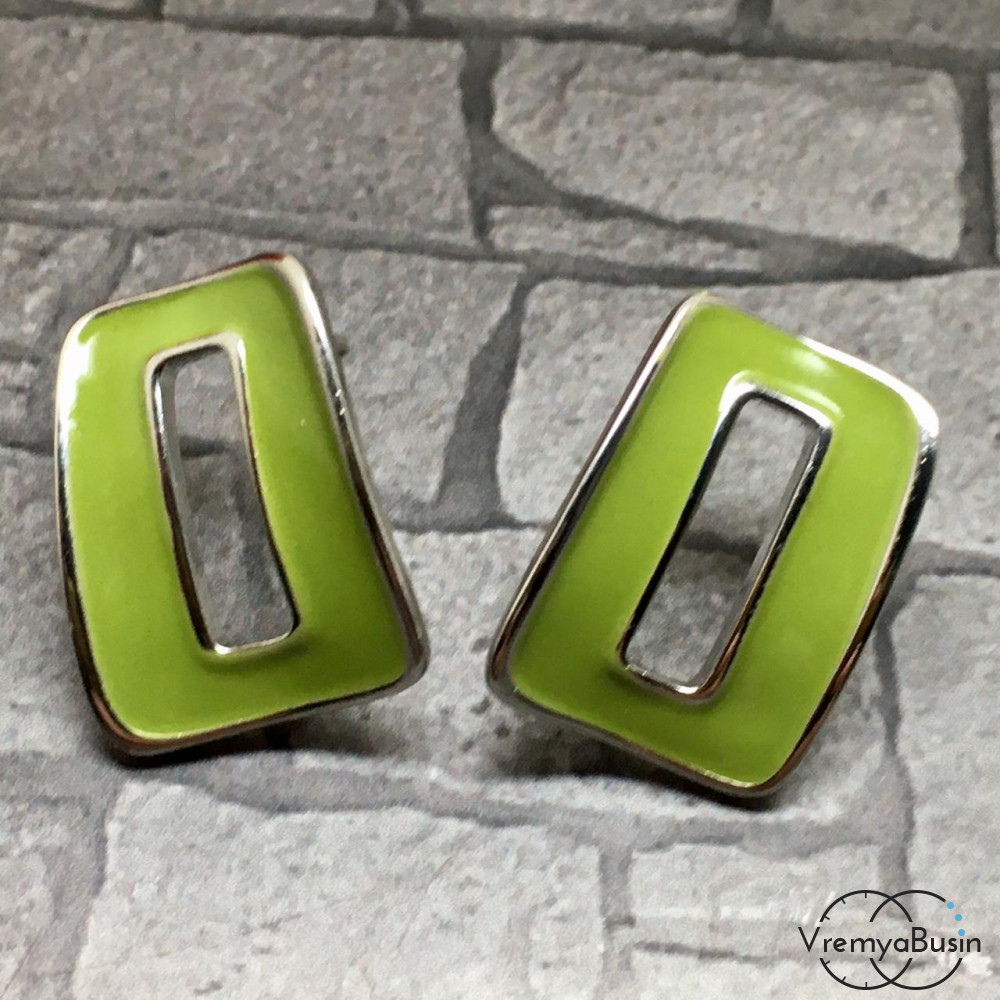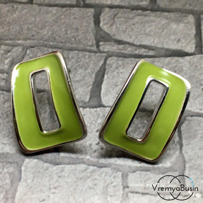 Швензы-гвоздики с эмалью цв. зелёный, латунь с родиевым покрытием (1 пара)