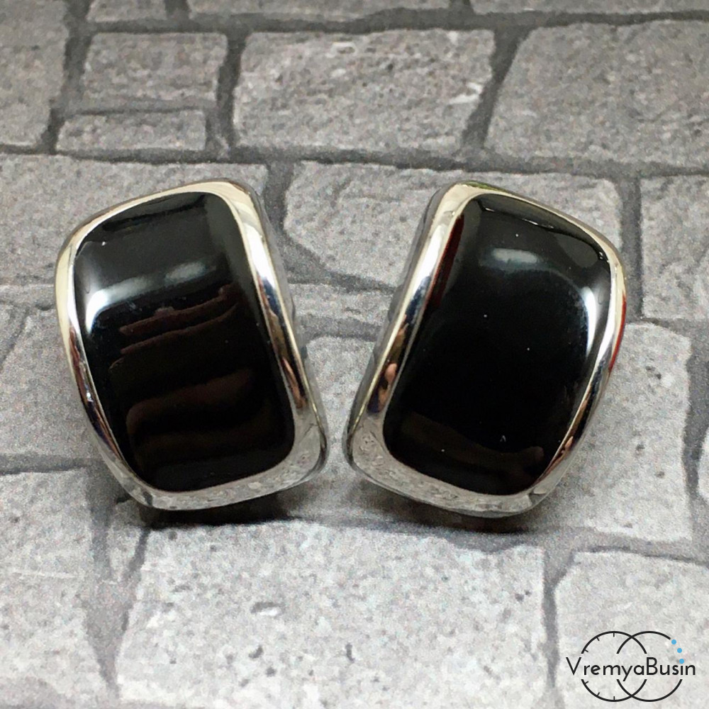 Швензы-гвоздики с эмалью цв. чёрный, латунь с родиевым покрытием (1 пара)