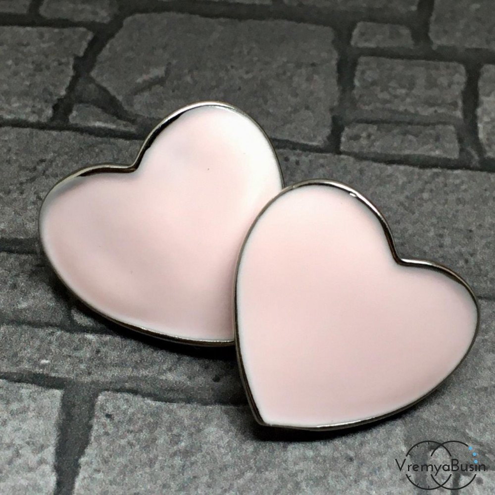 Швензы-гвоздики с эмалью цв. розовый, латунь с родиевым покрытием (1 пара)