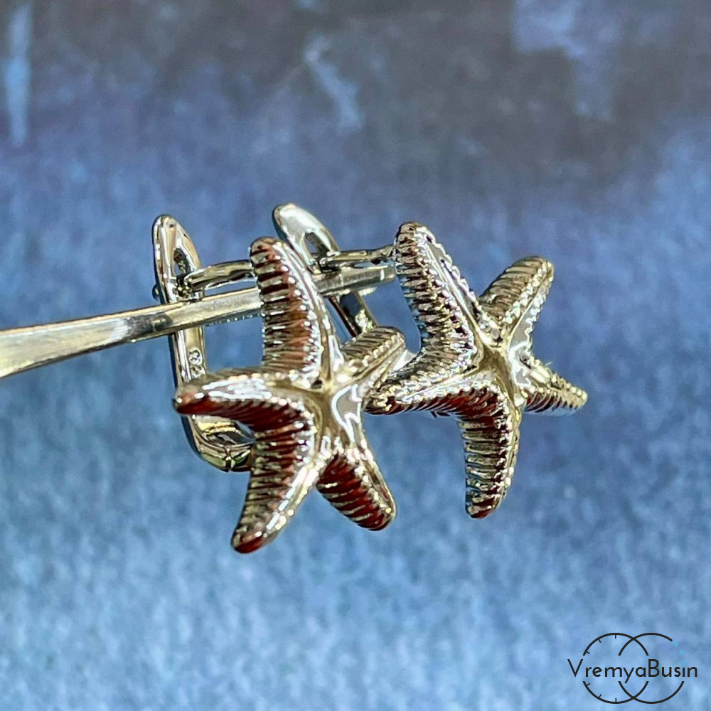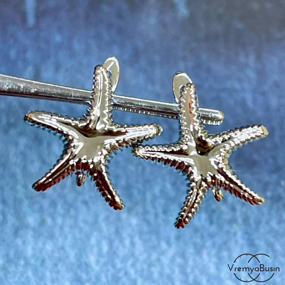 Швензы "Морская звезда" с английским замком, 17х17 мм, латунь с родиевым покрытием (1 пара)