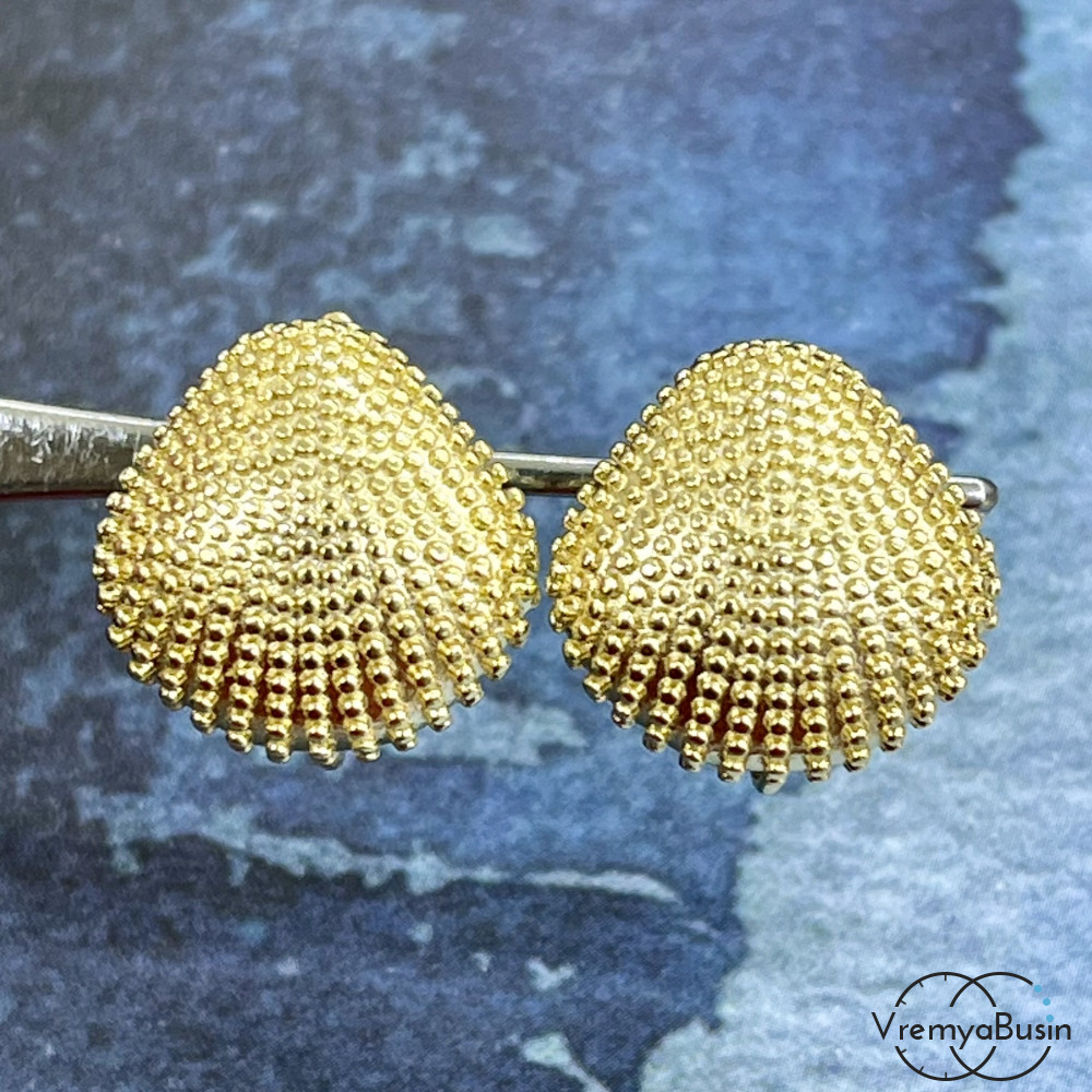 Швензы "Ракушка" с английским замком, 17х17 мм, латунь с позолотой (1 пара)