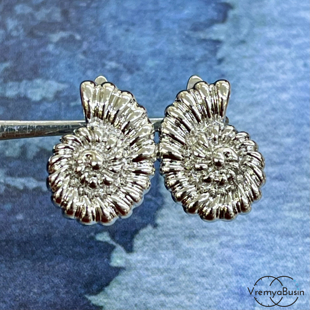 Швензы "Ракушка" с английским замком, 17х12 мм, латунь с родиевым покрытием (1 пара)