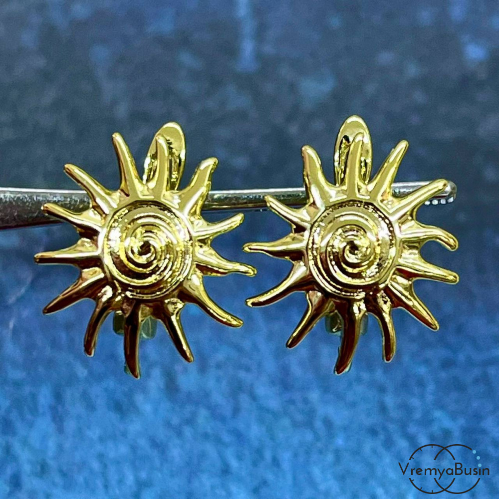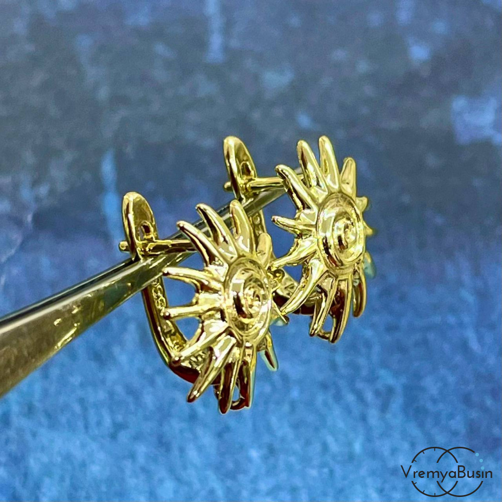 Швензы "Солнце" с английским замком, 16х18 мм, латунь с позолотой (1 пара)