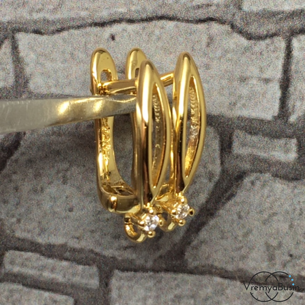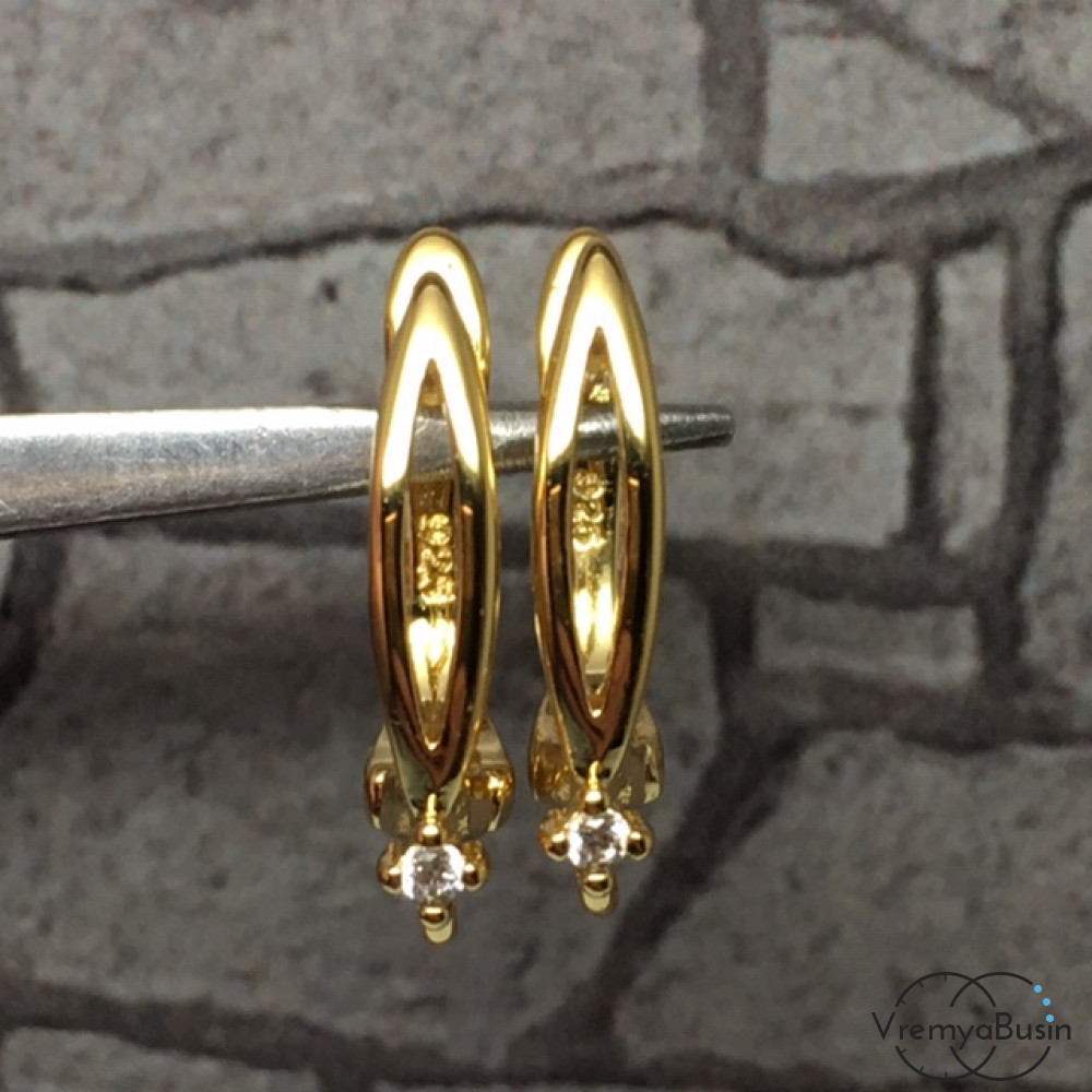 Швензы с английским замком. Латунь с позолотой и фианитами