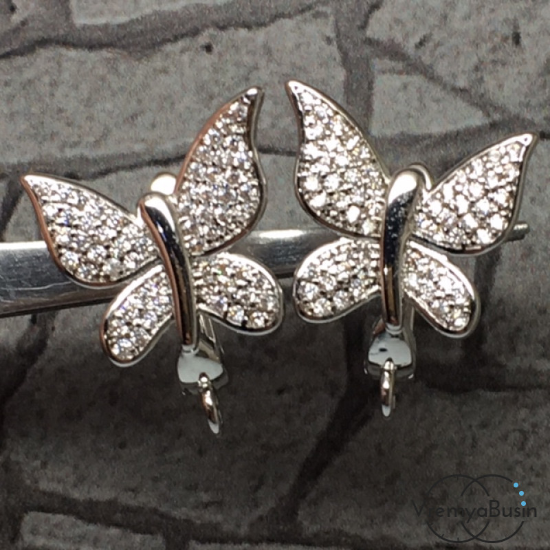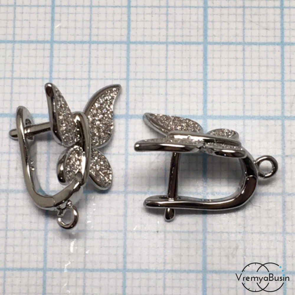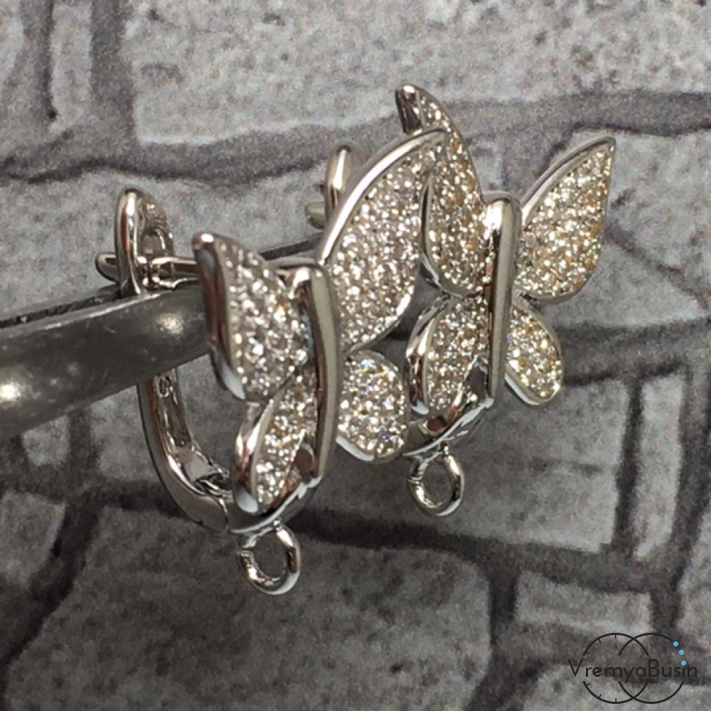 Швензы с английским замком. Латунь с родиевым покрытием и фианитами