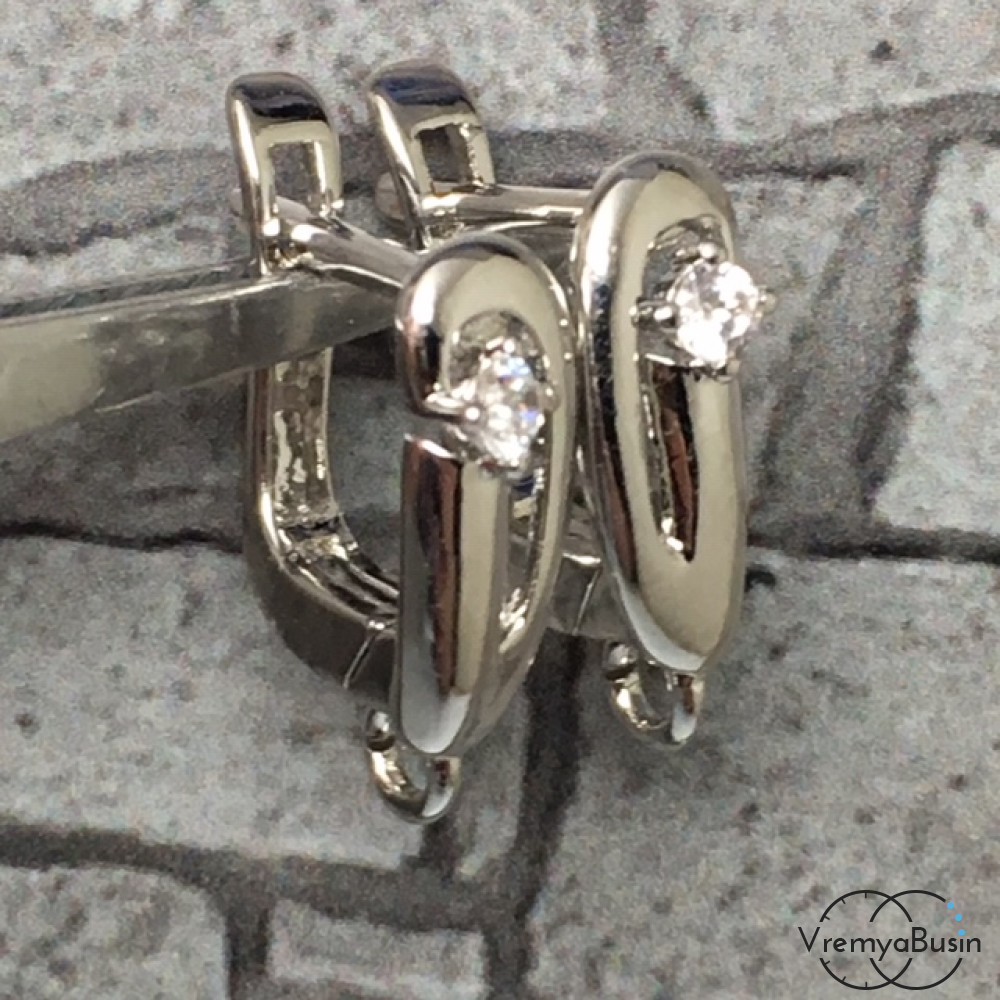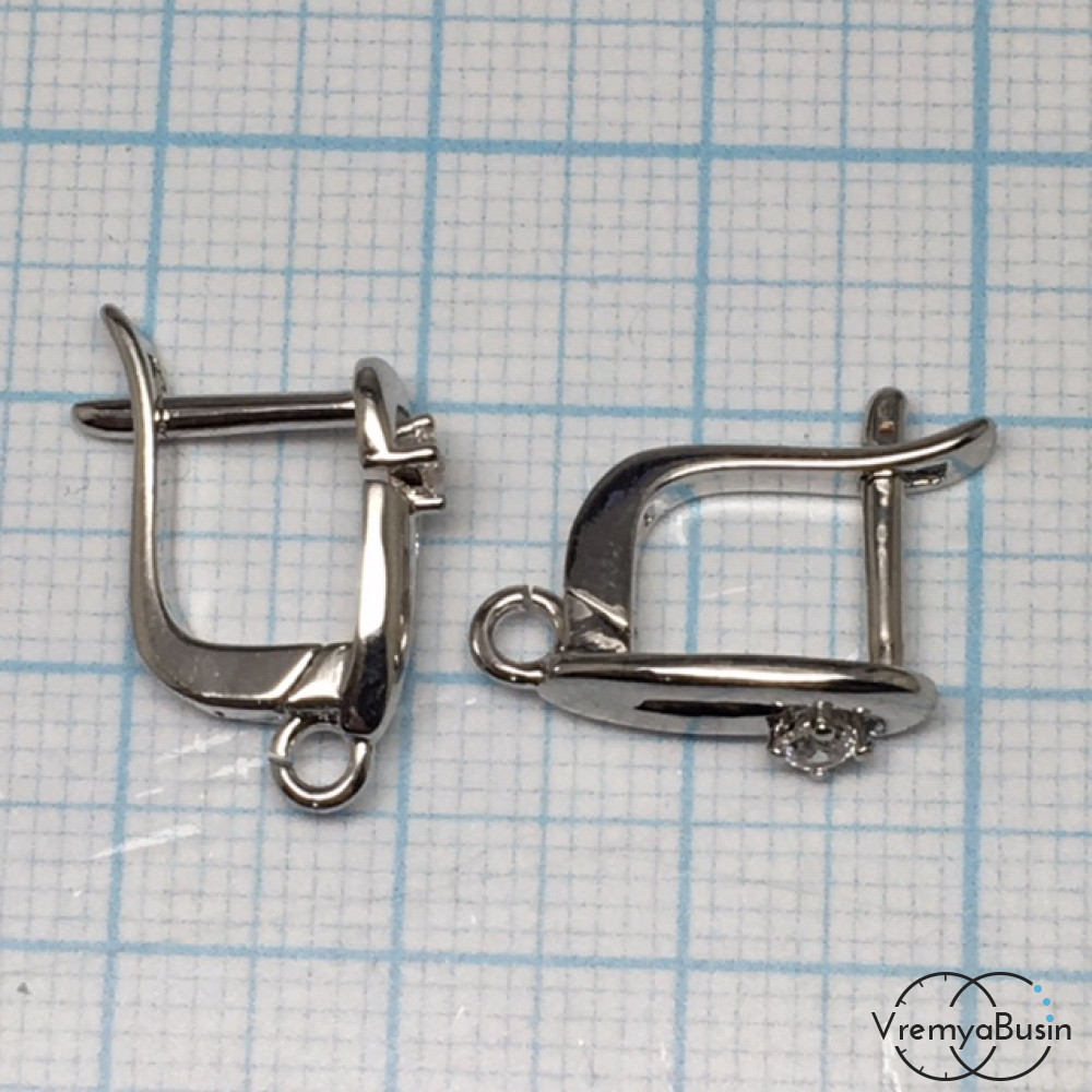 Швензы с английским замком. Латунь с родиевым покрытием и фианитами