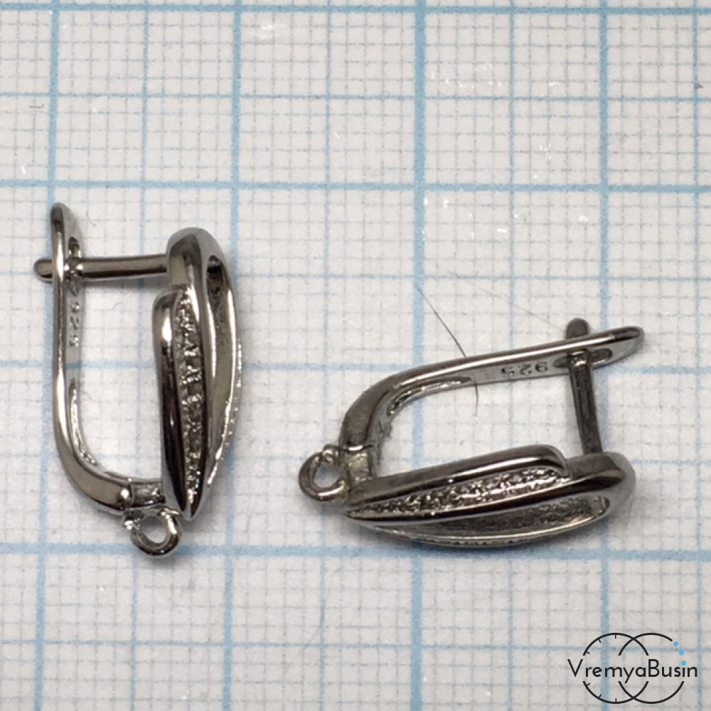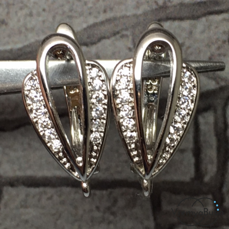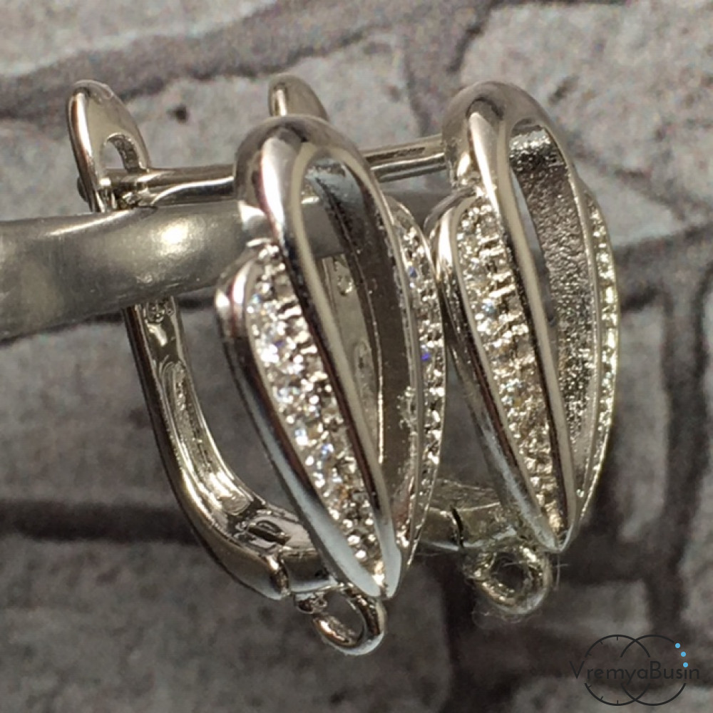 Швензы с английским замком. Латунь с родиевым покрытием и фианитами