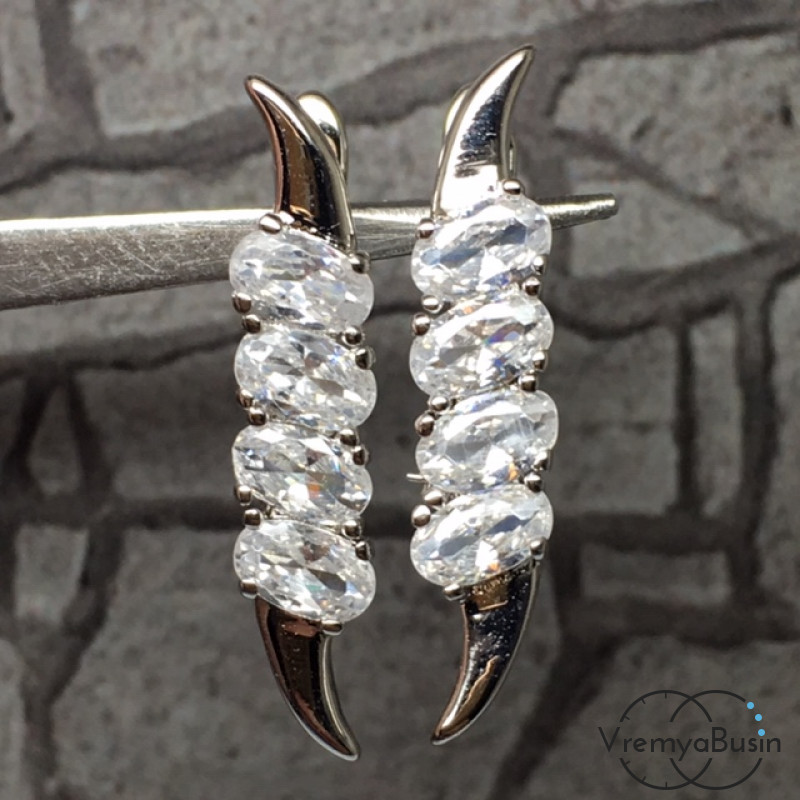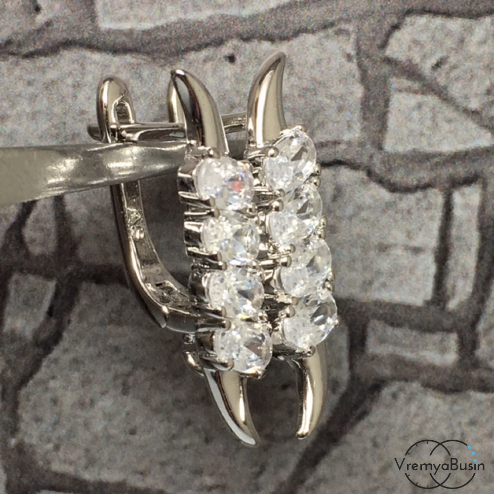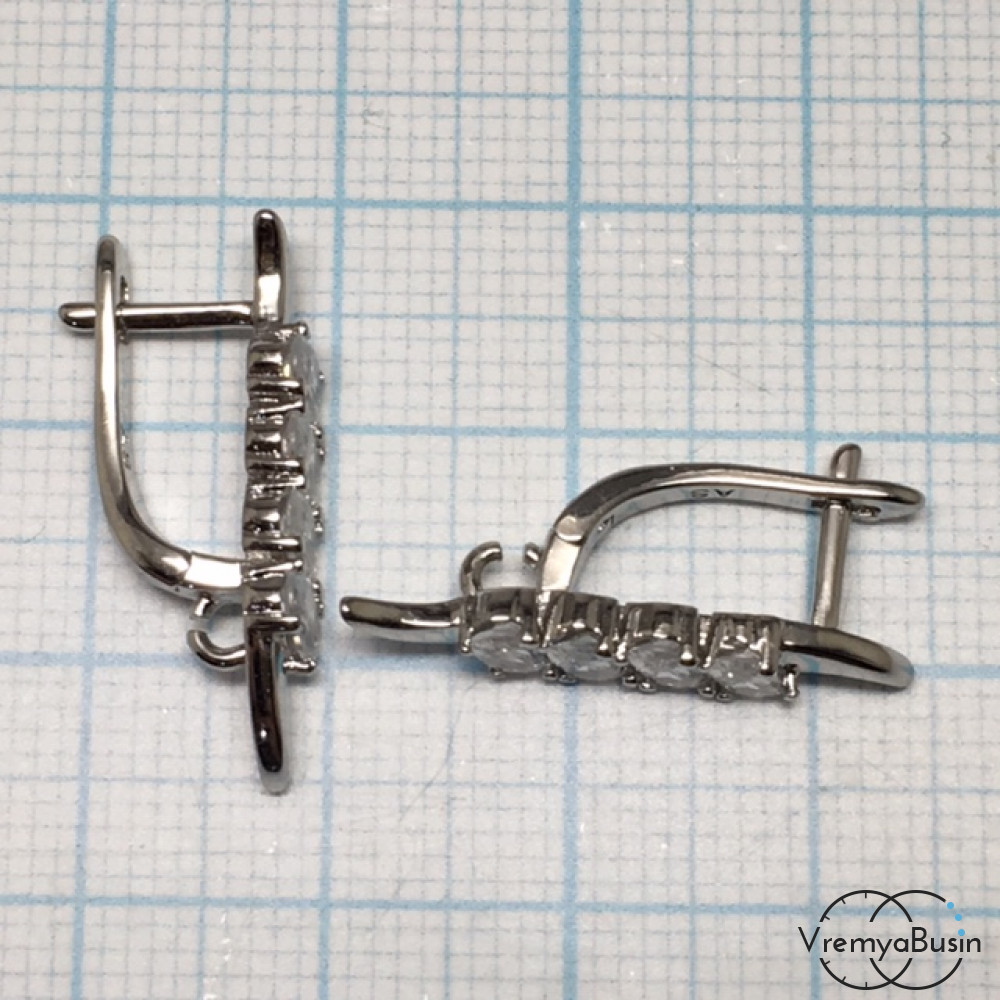 Швензы с английским замком. Латунь с родиевым покрытием и фианитами