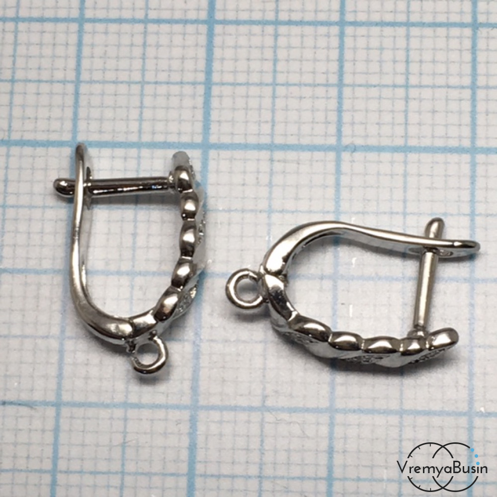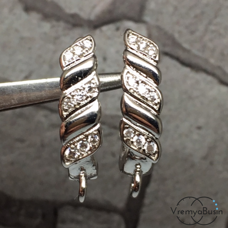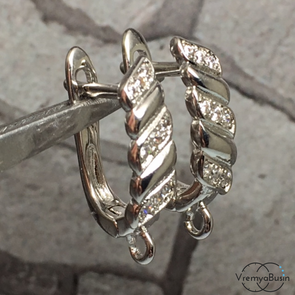 Швензы с английским замком. Латунь с родиевым покрытием и фианитами