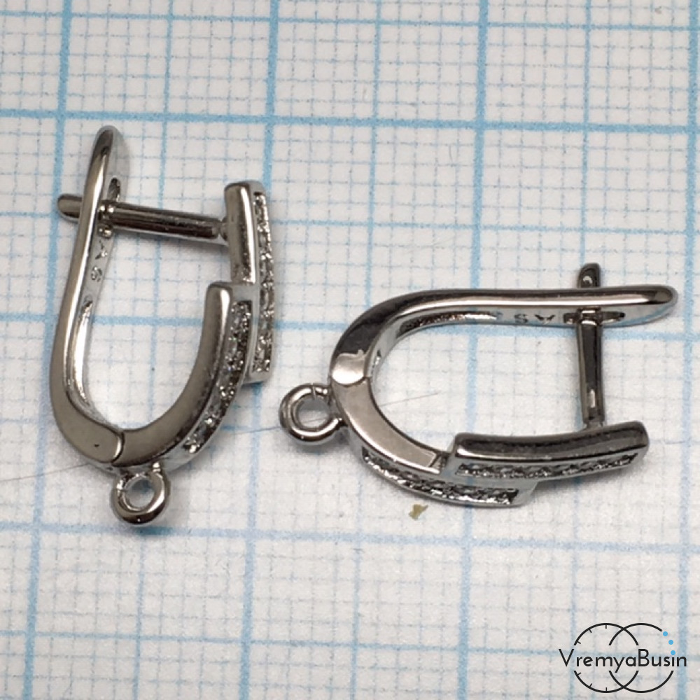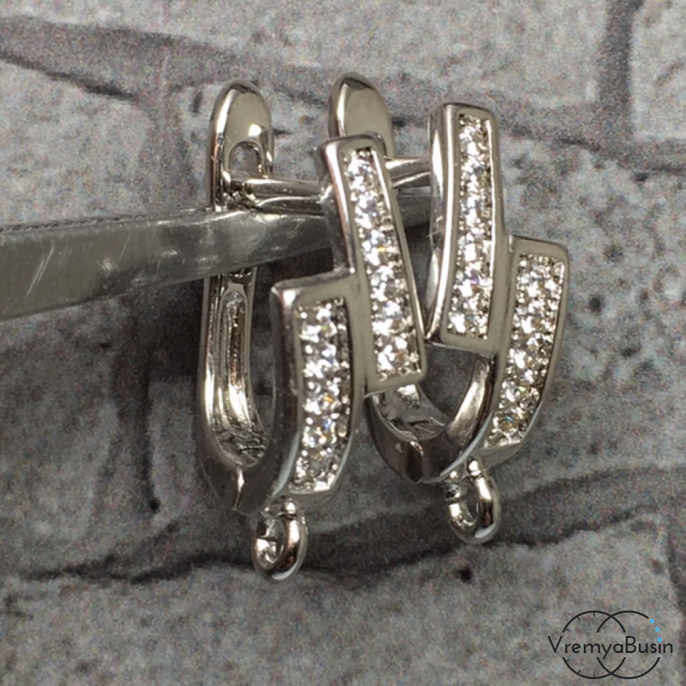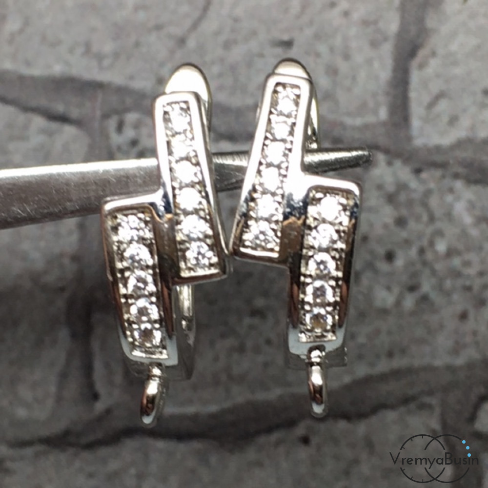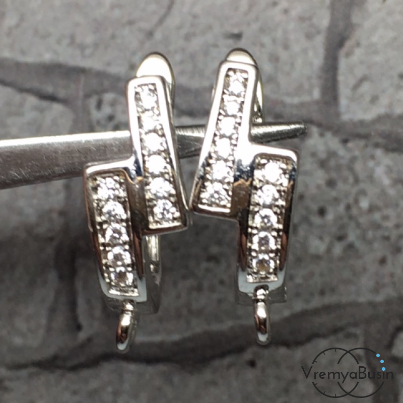 Швензы с английским замком. Латунь с родиевым покрытием и фианитами