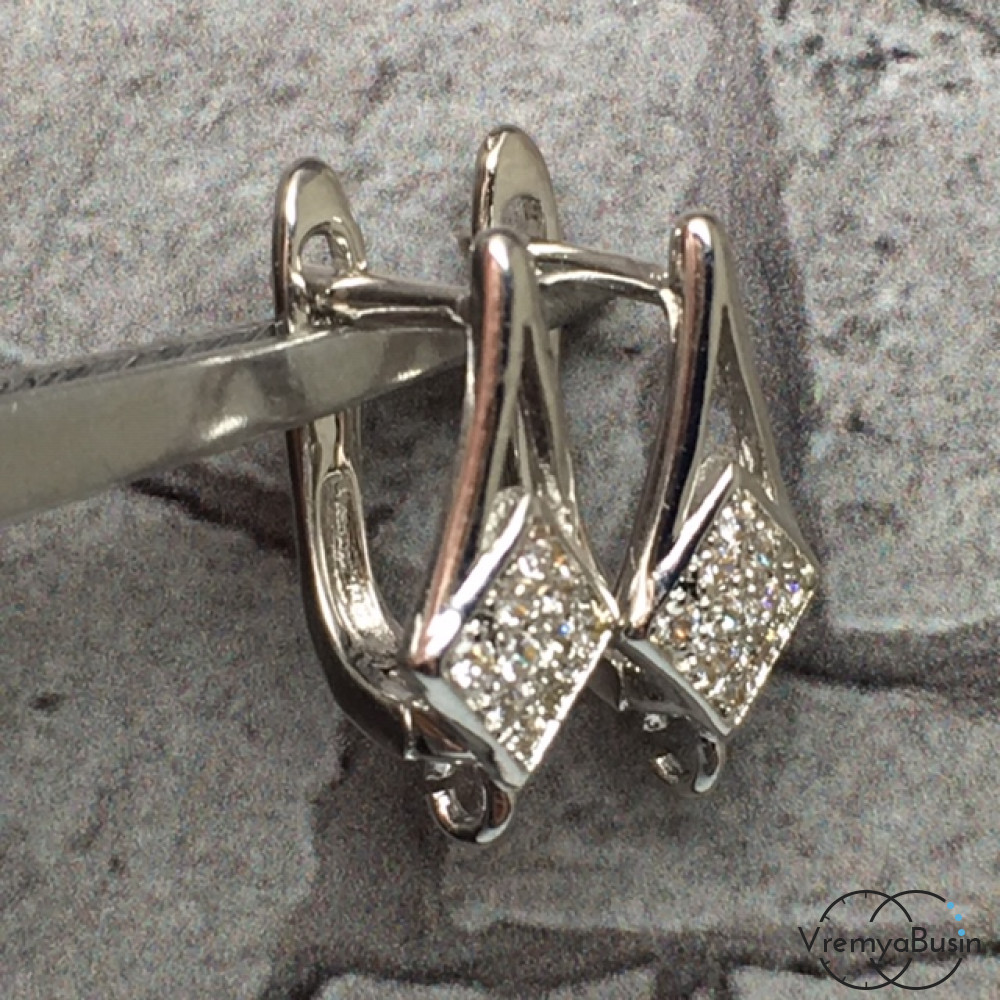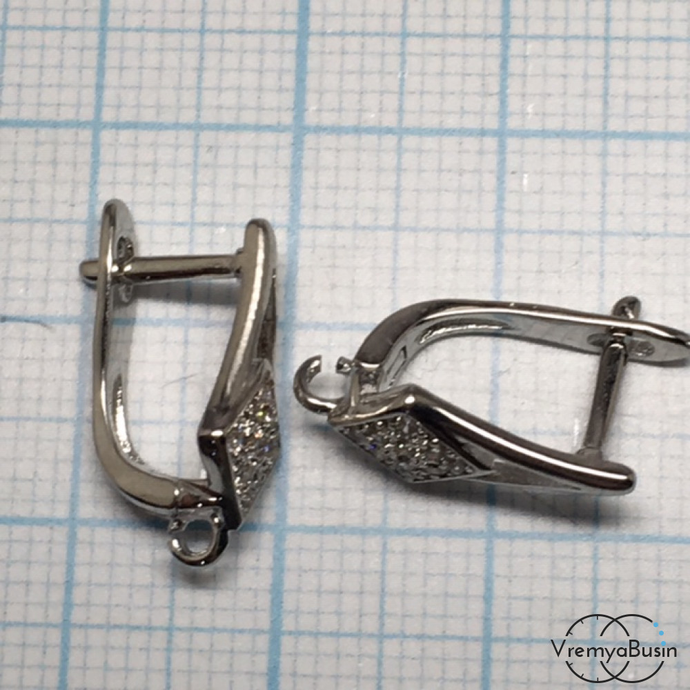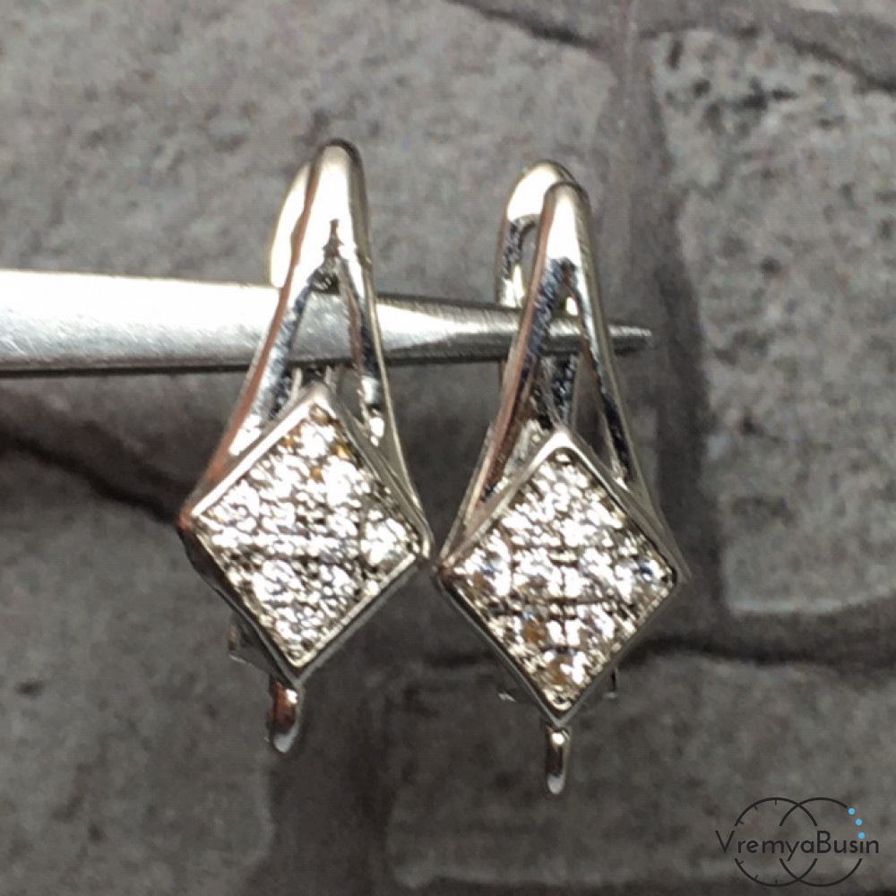 Швензы с английским замком. Латунь с родиевым покрытием и фианитами