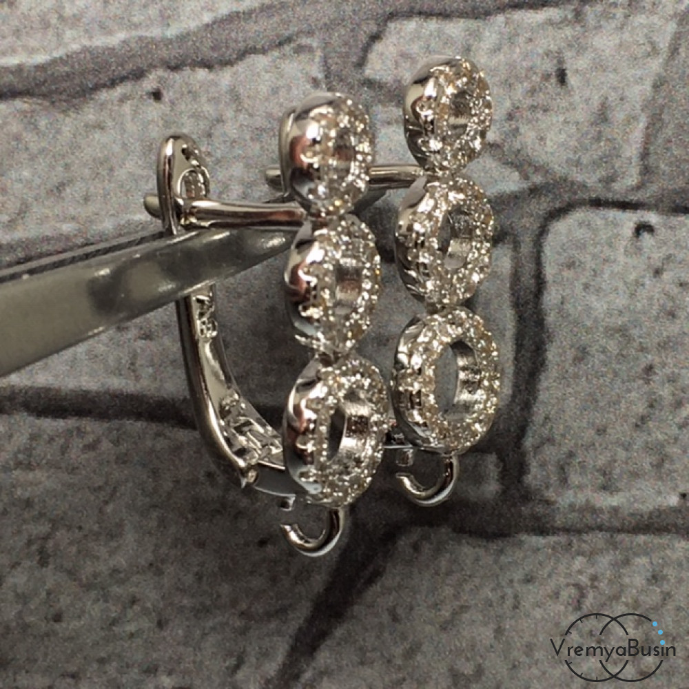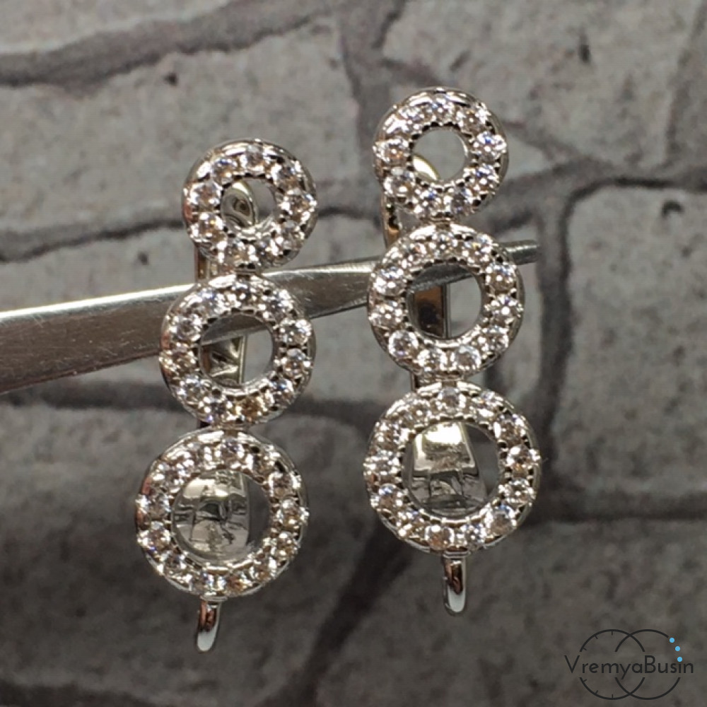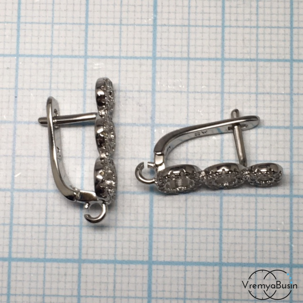 Швензы с английским замком. Латунь с родиевым покрытием и фианитами