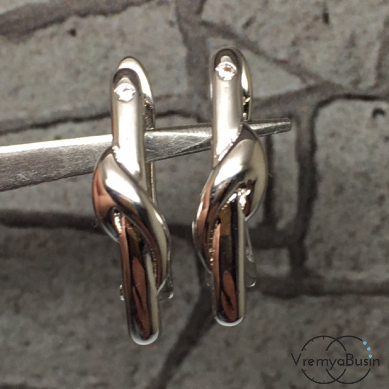 Швензы с английским замком. Латунь с родиевым покрытием и фианитами