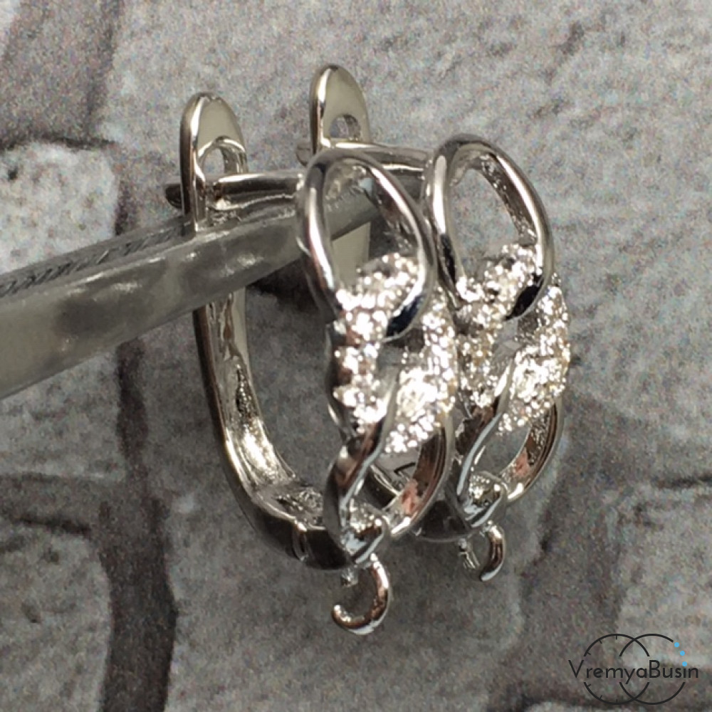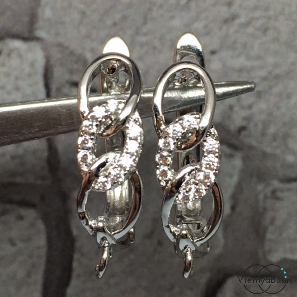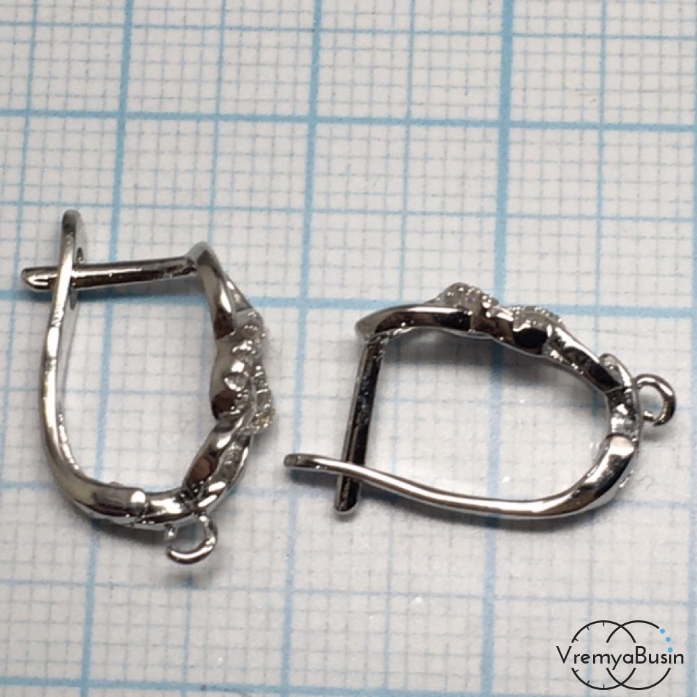 Швензы с английским замком. Латунь с родиевым покрытием и фианитами