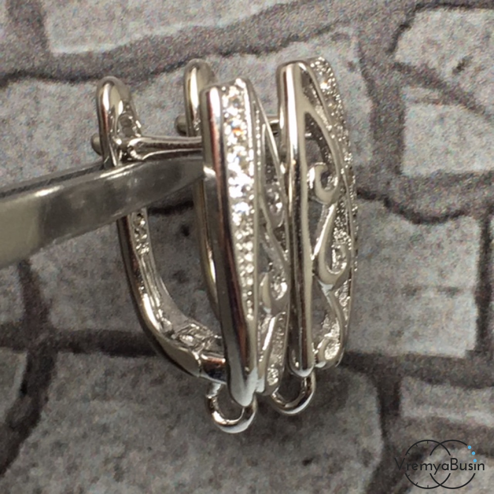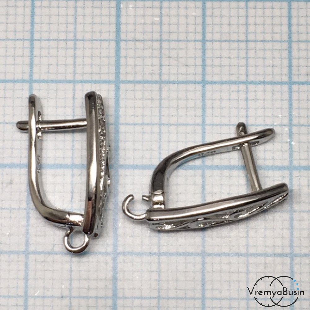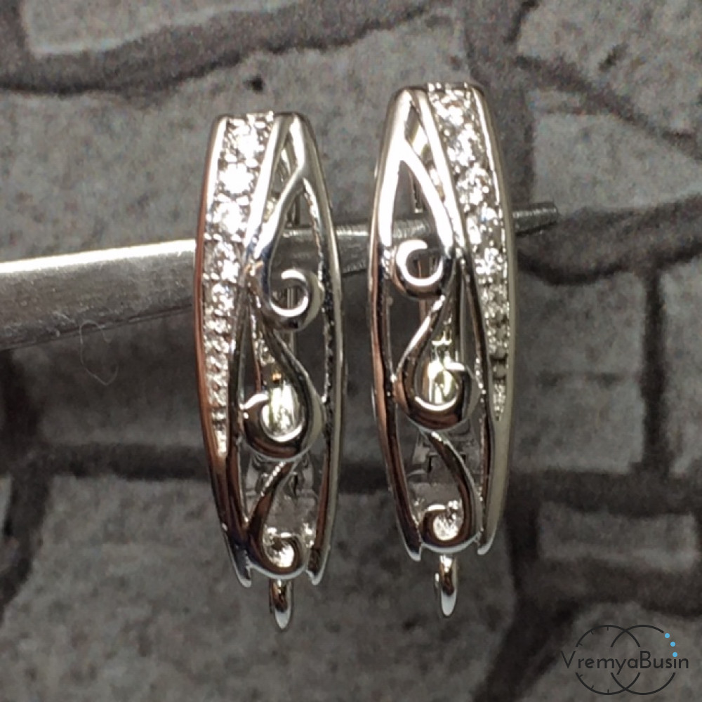 Швензы с английским замком. Латунь с родиевым покрытием и фианитами