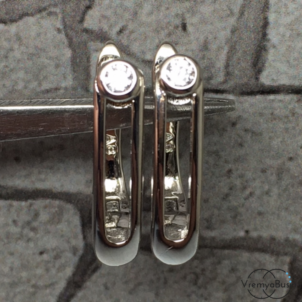 Швензы с английским замком. Латунь с родиевым покрытием и фианитами