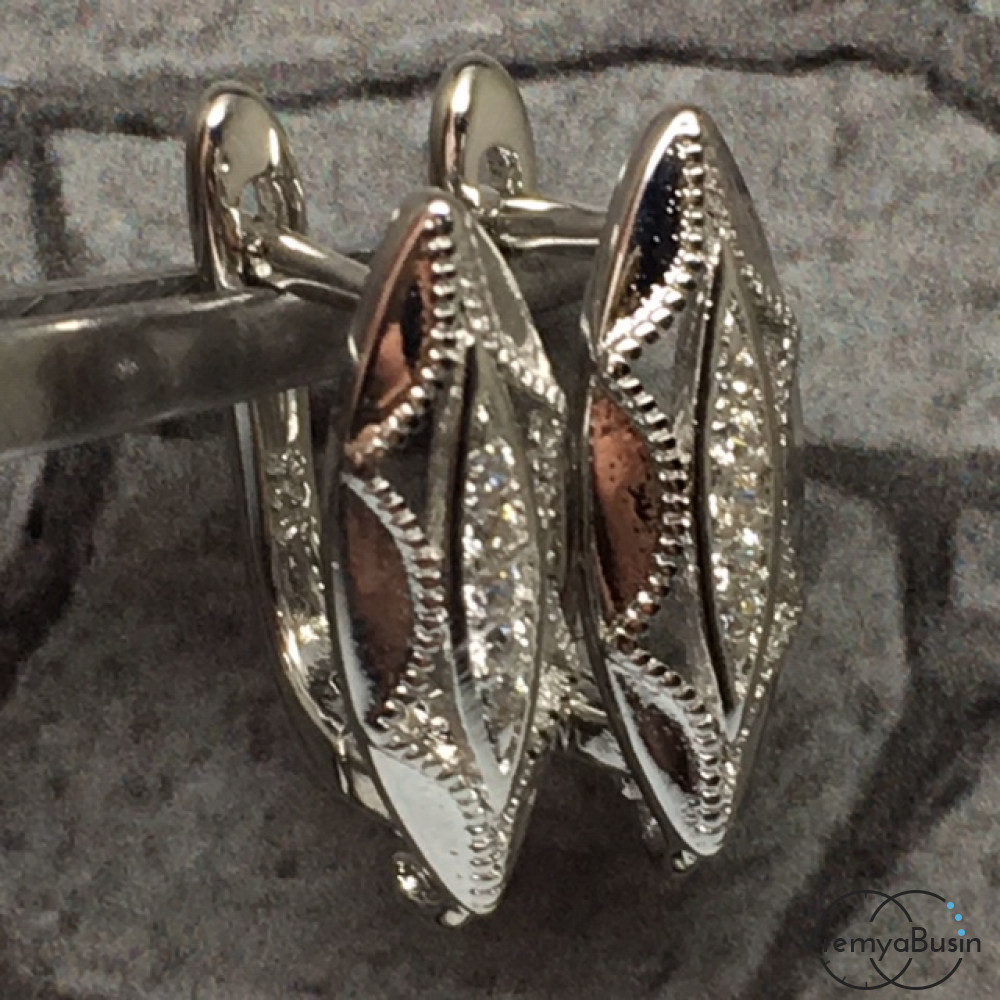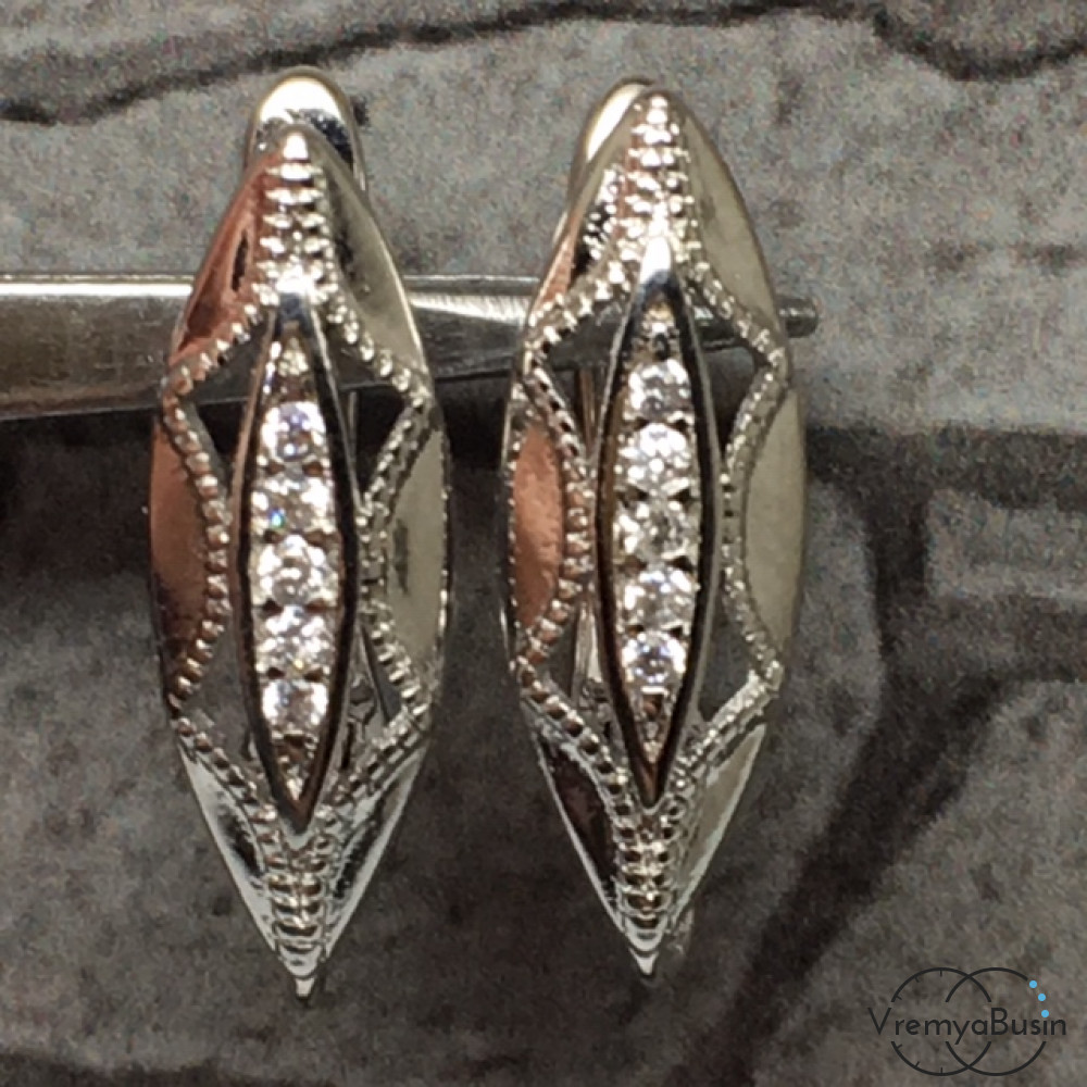 Швензы с английским замком. Латунь с родиевым покрытием и фианитами