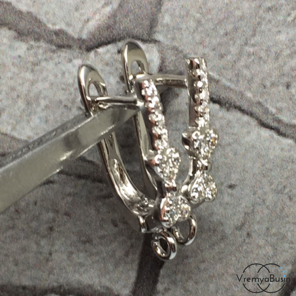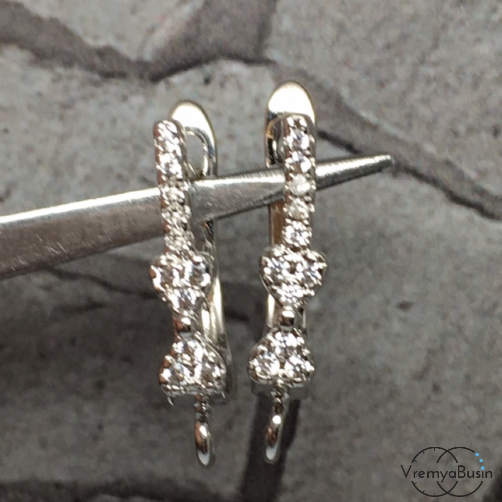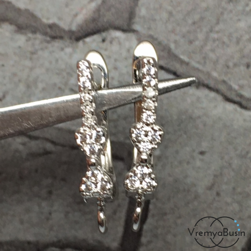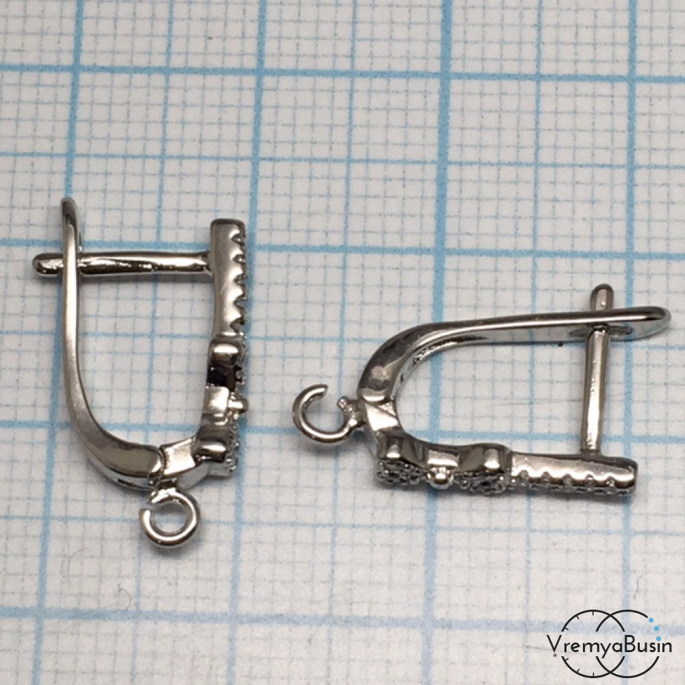 Швензы с английским замком. Латунь с родиевым покрытием и фианитами