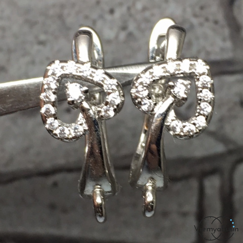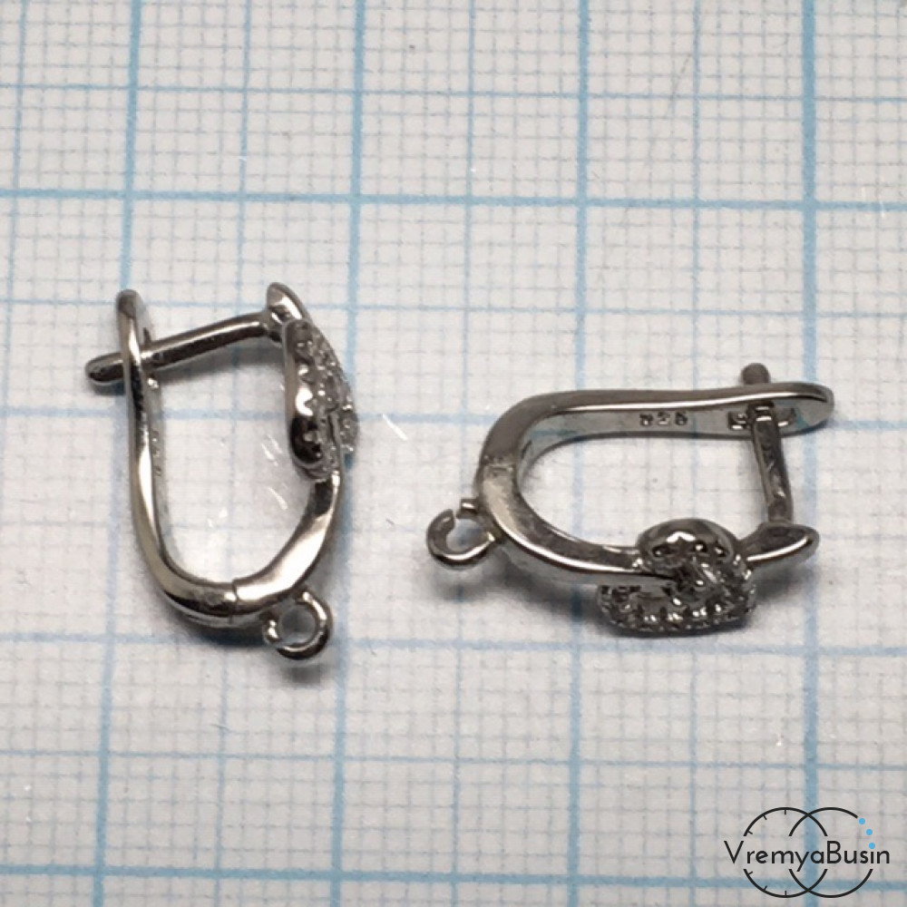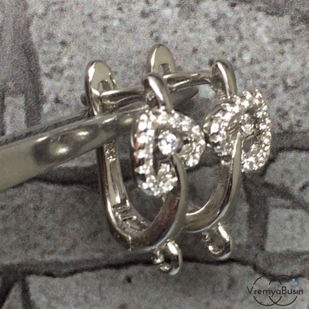 Швензы с английским замком. Латунь с родиевым покрытием и фианитами