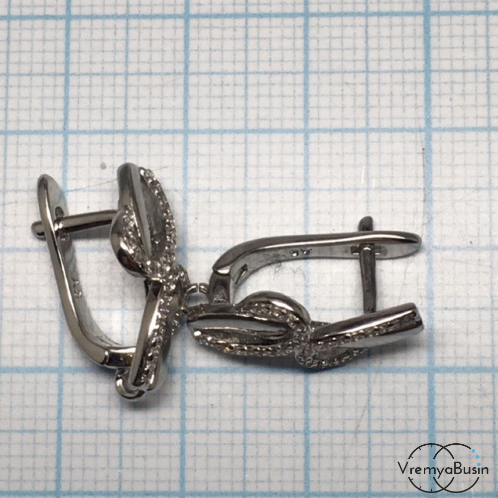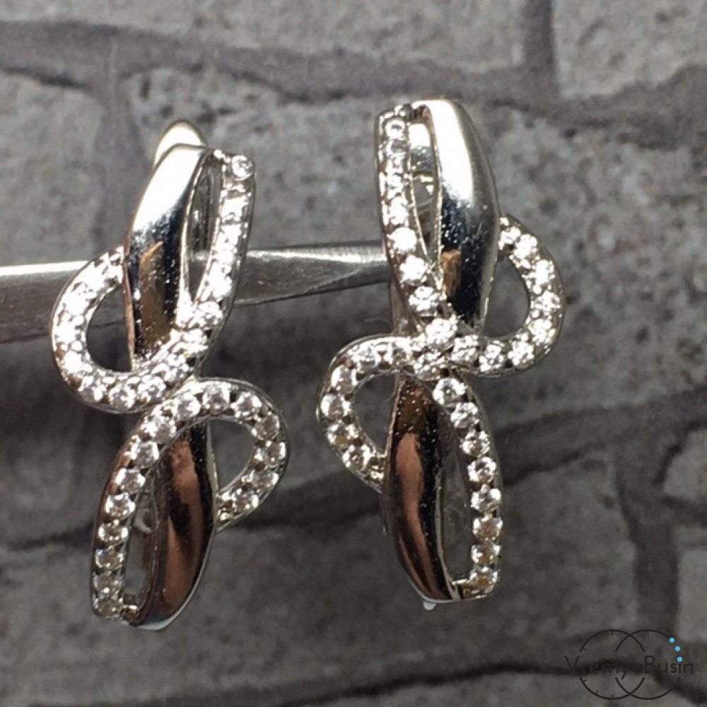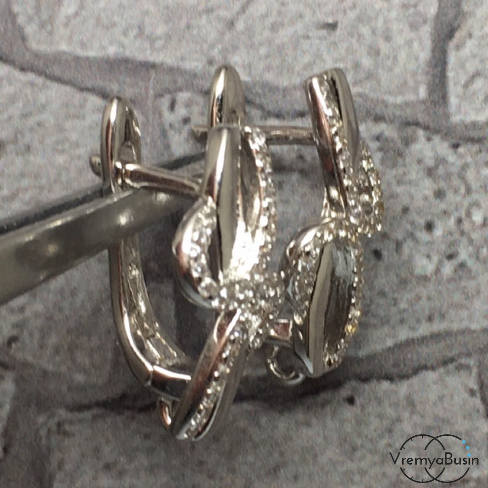 Швензы с английским замком. Латунь с родиевым покрытием и фианитами