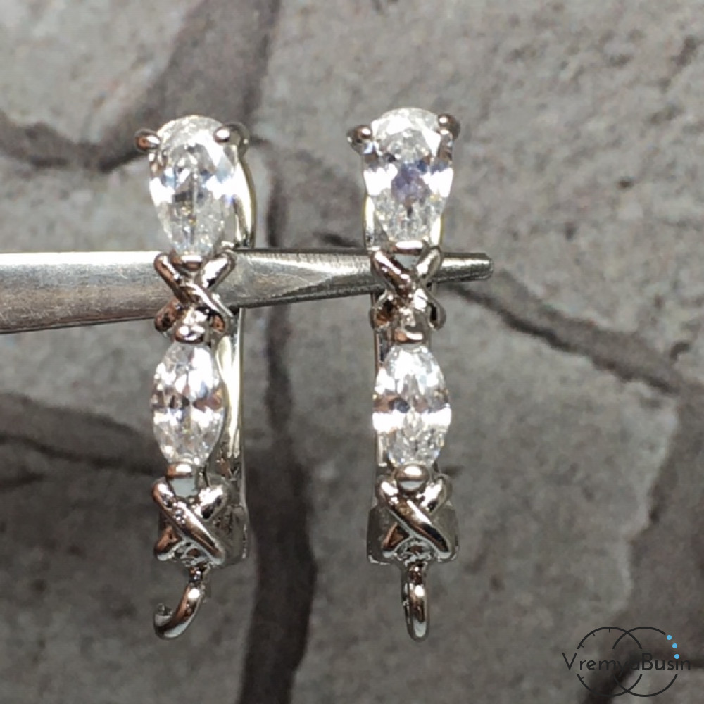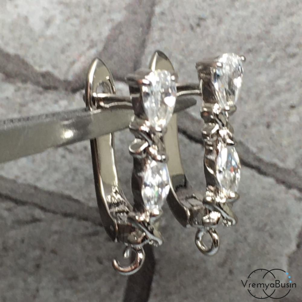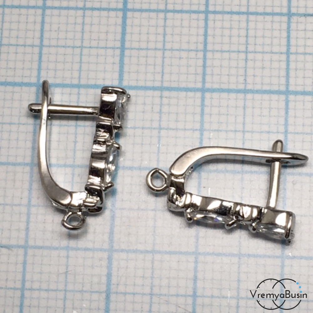 Швензы с английским замком. Латунь с родиевым покрытием и фианитами
