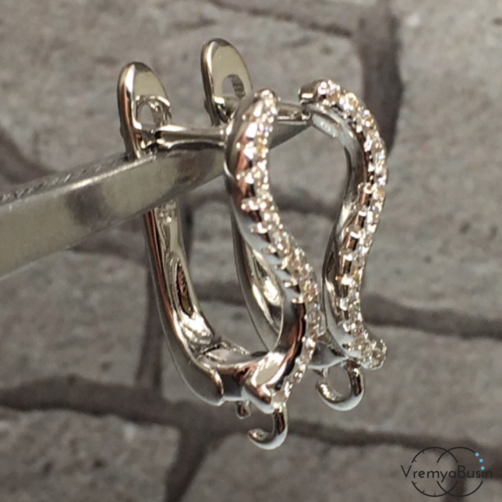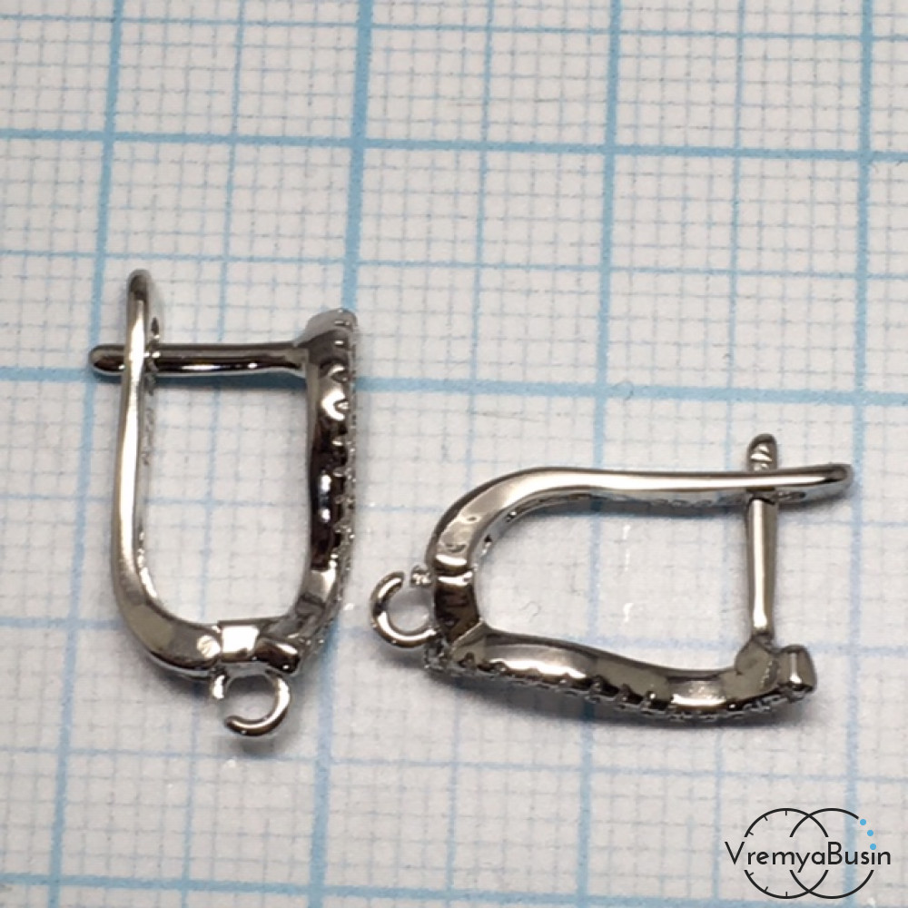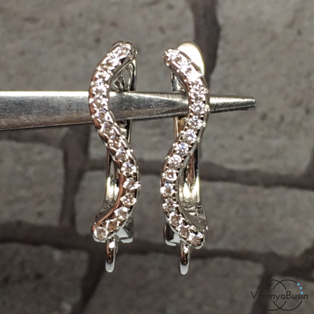 Швензы с английским замком. Латунь с родиевым покрытием и фианитами