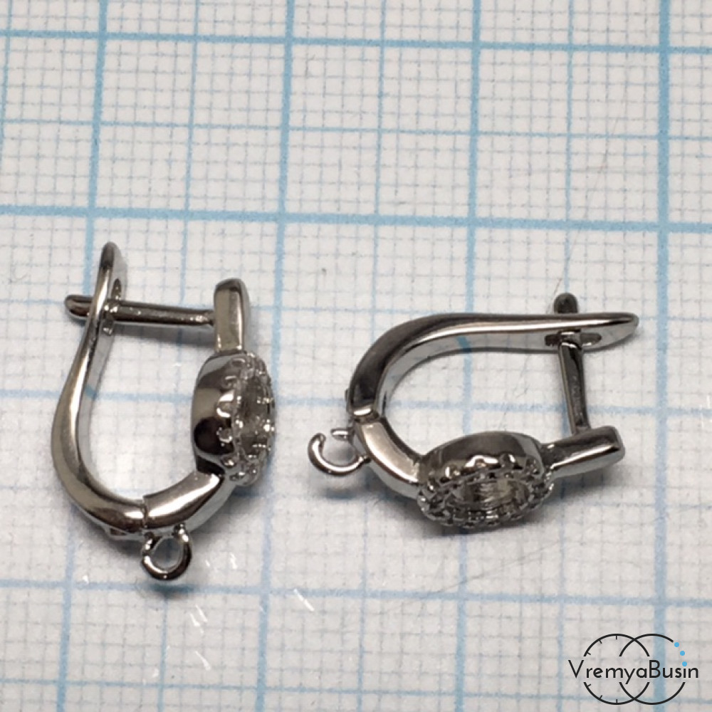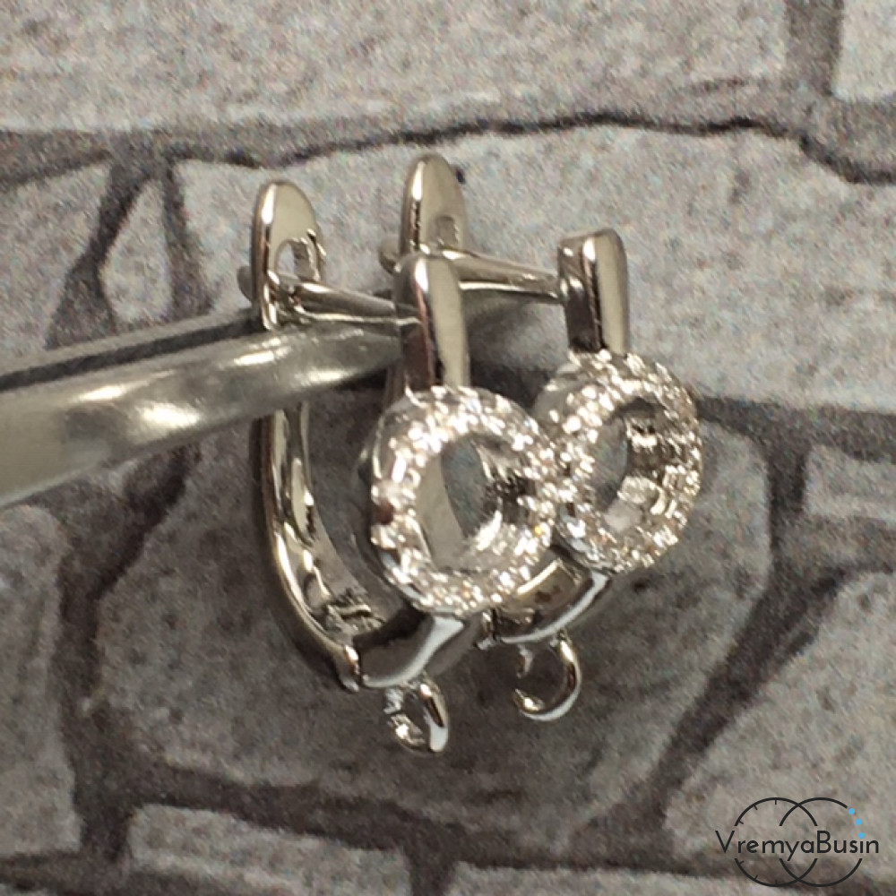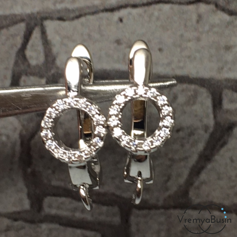 Швензы с английским замком. Латунь с родиевым покрытием и фианитами