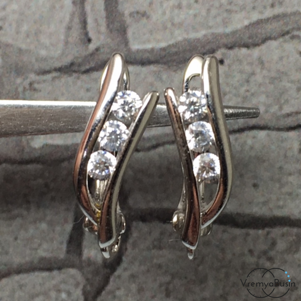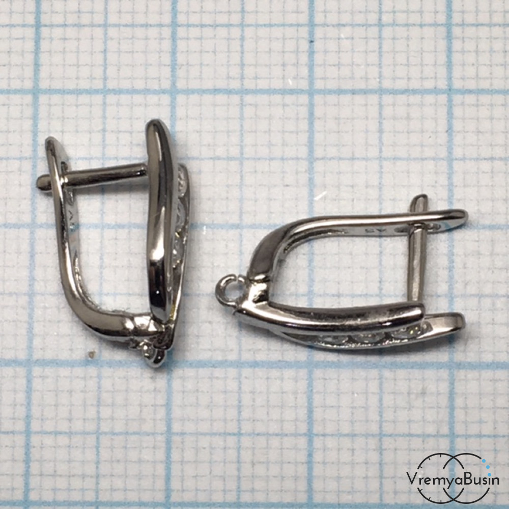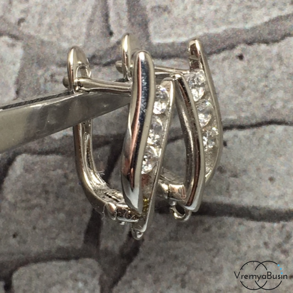 Швензы с английским замком. Латунь с родиевым покрытием и фианитами