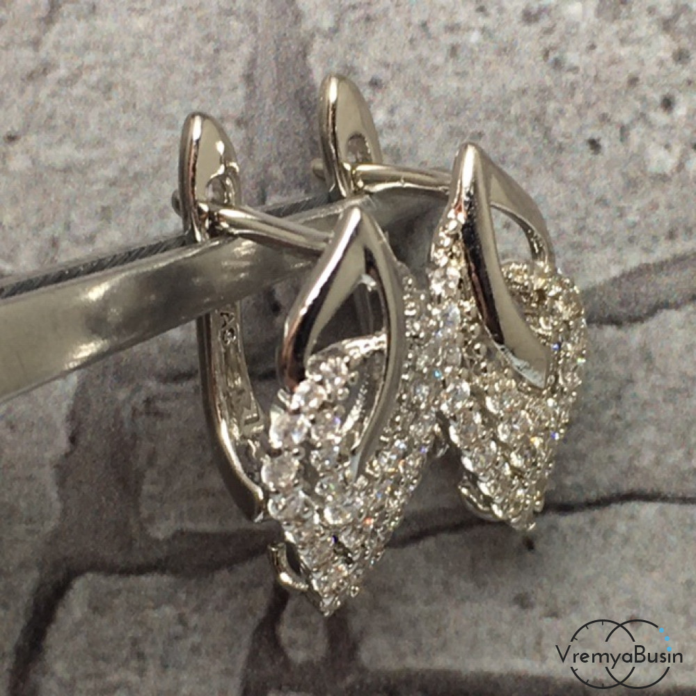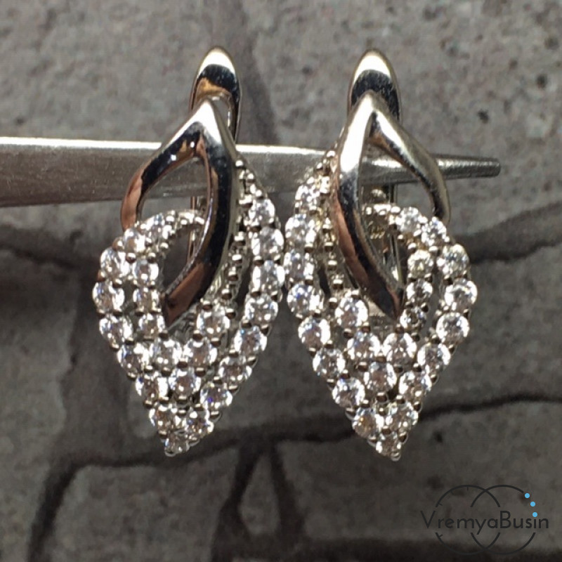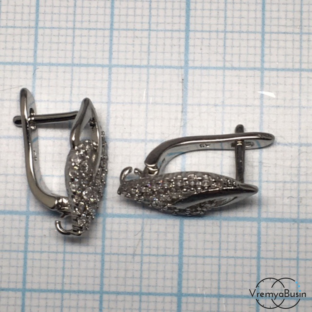 Швензы с английским замком. Латунь с родиевым покрытием и фианитами