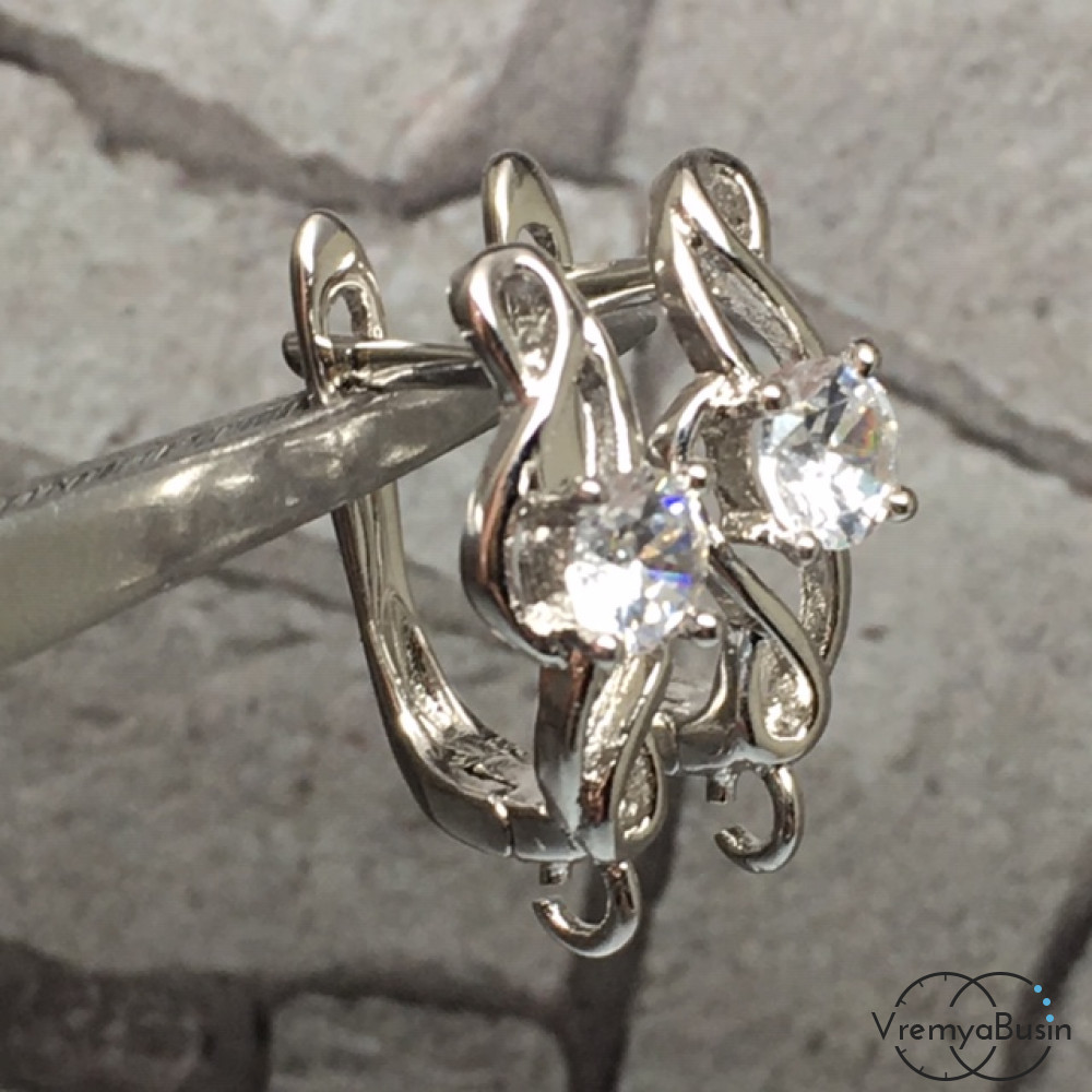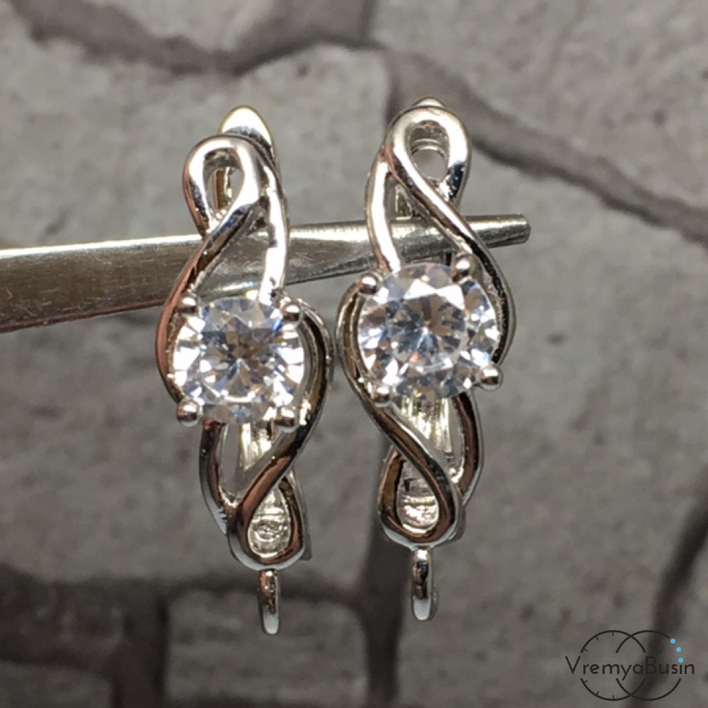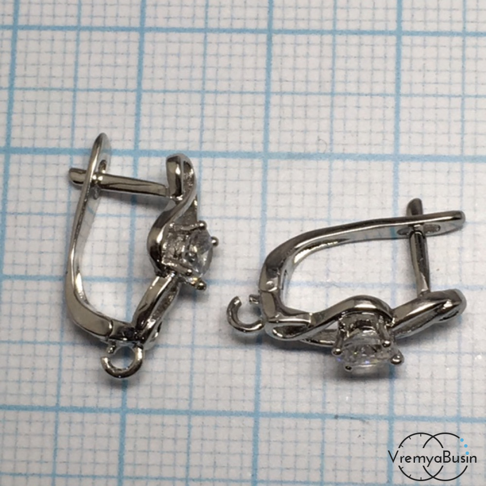 Швензы с английским замком. Латунь с родиевым покрытием и фианитами