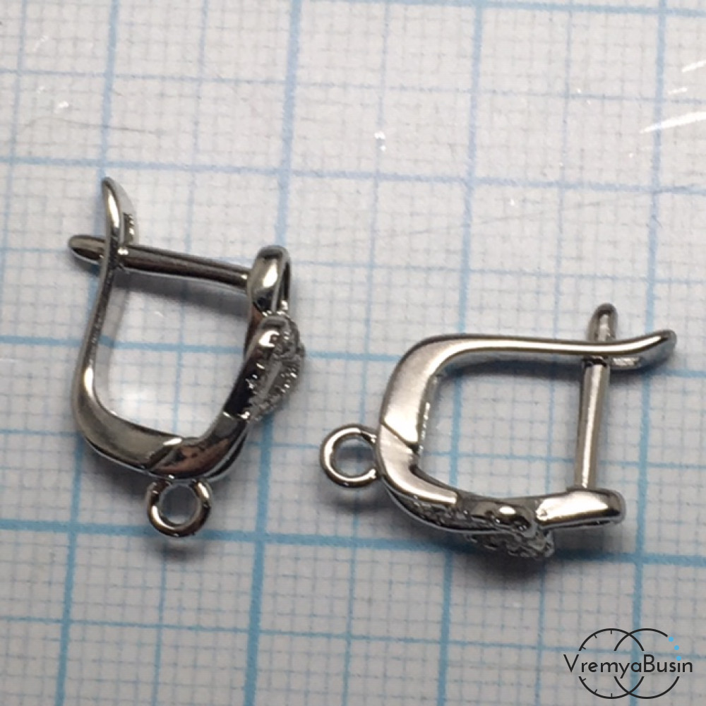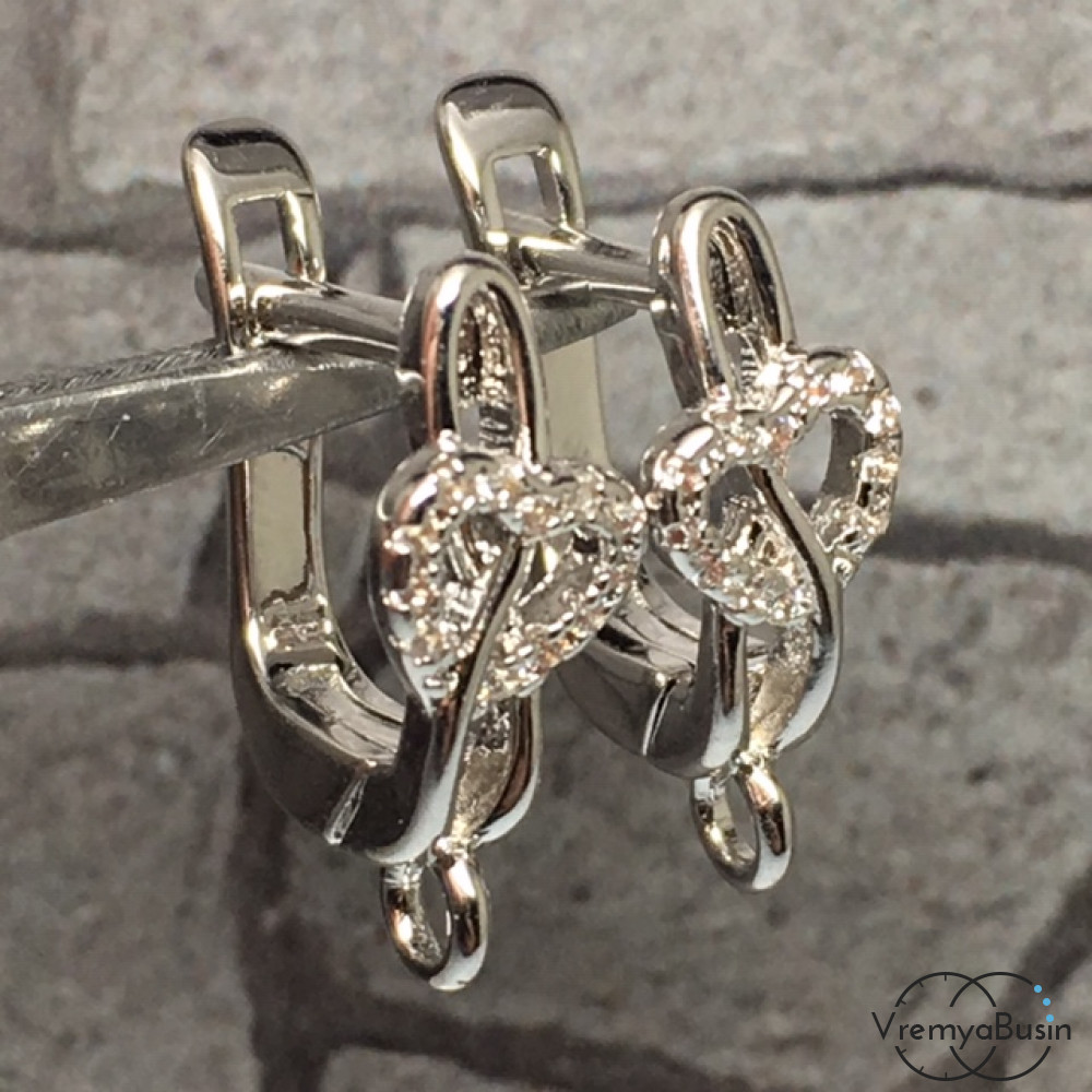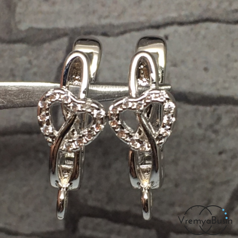 Швензы с английским замком. Латунь с родиевым покрытием и фианитами