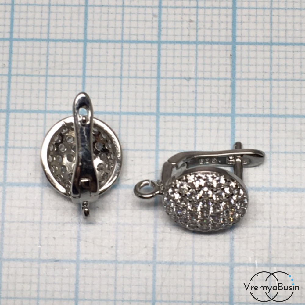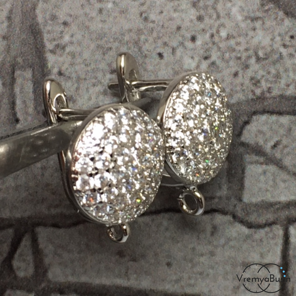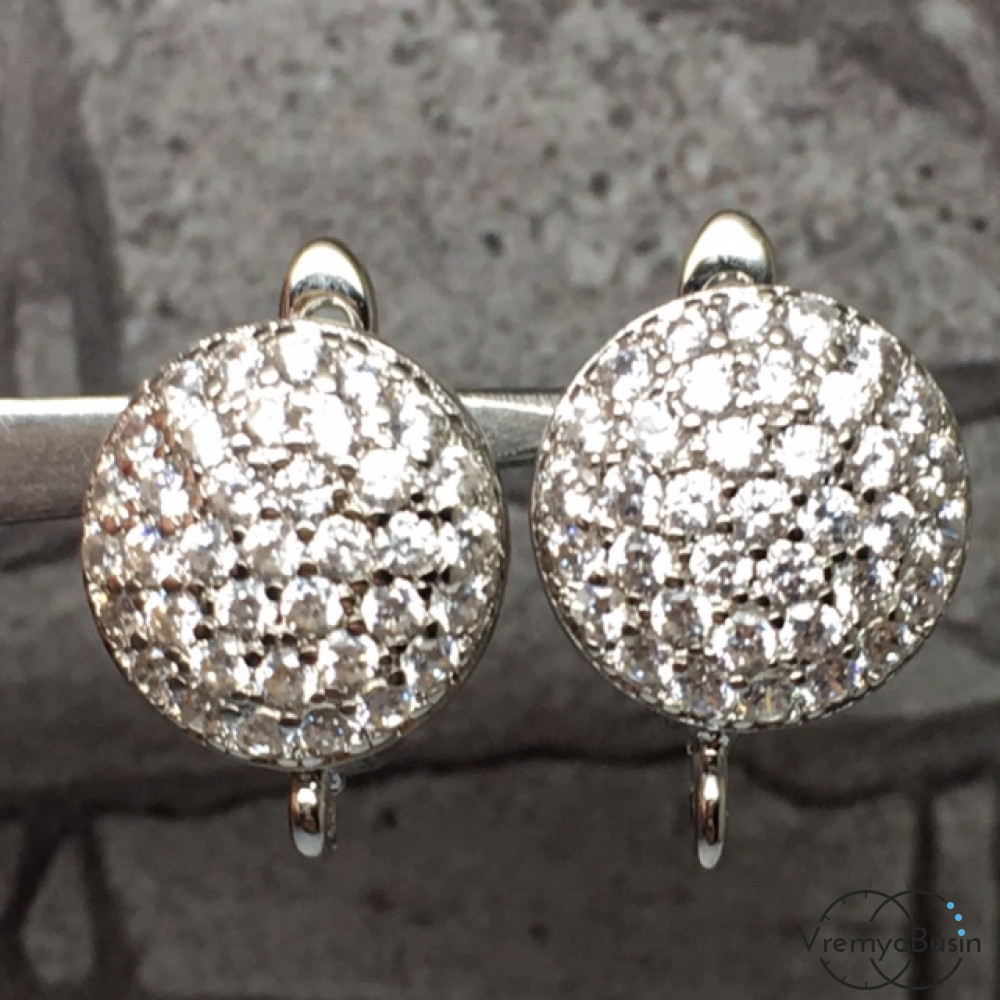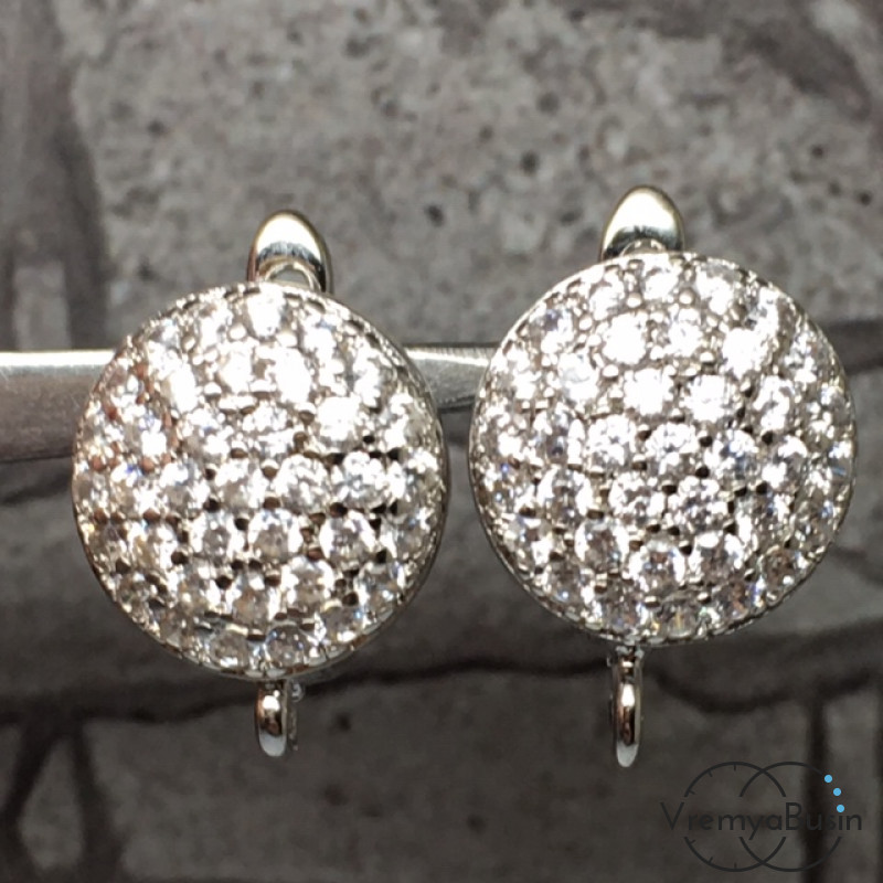 Швензы с английским замком. Латунь с родиевым покрытием и фианитами