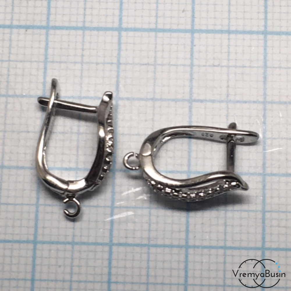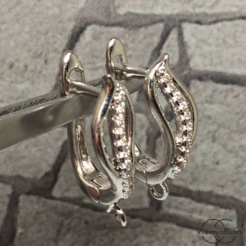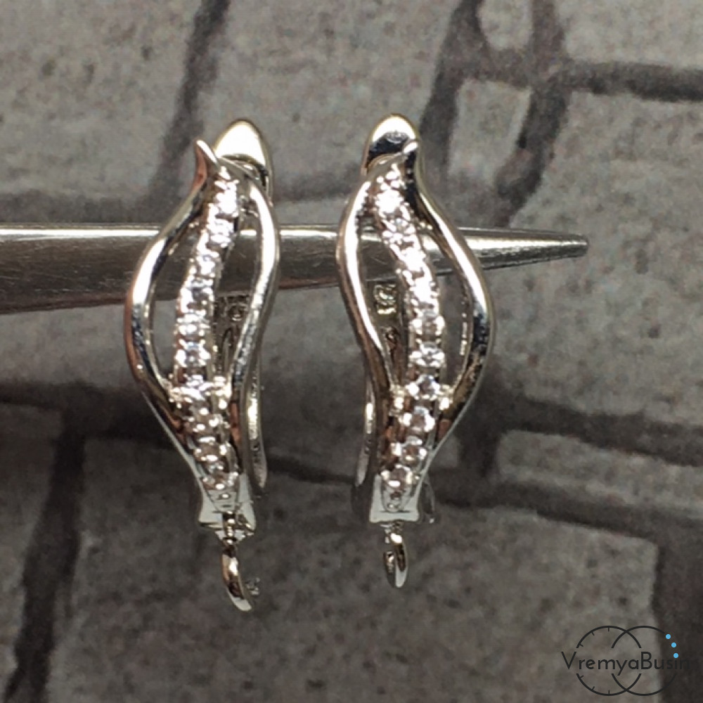 Швензы с английским замком. Латунь с родиевым покрытием и фианитами