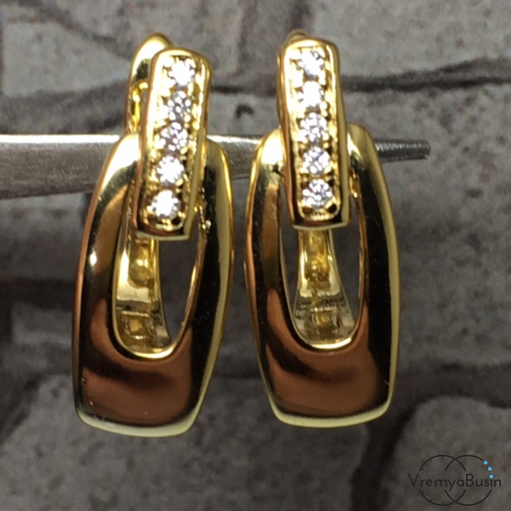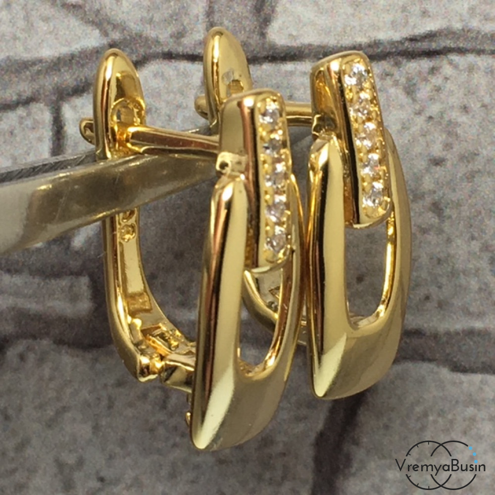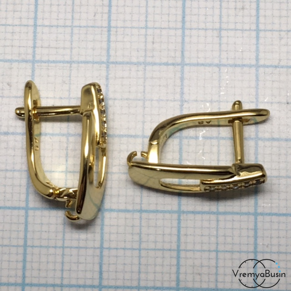 Швензы с английским замком. Латунь с позолотой и фианитами