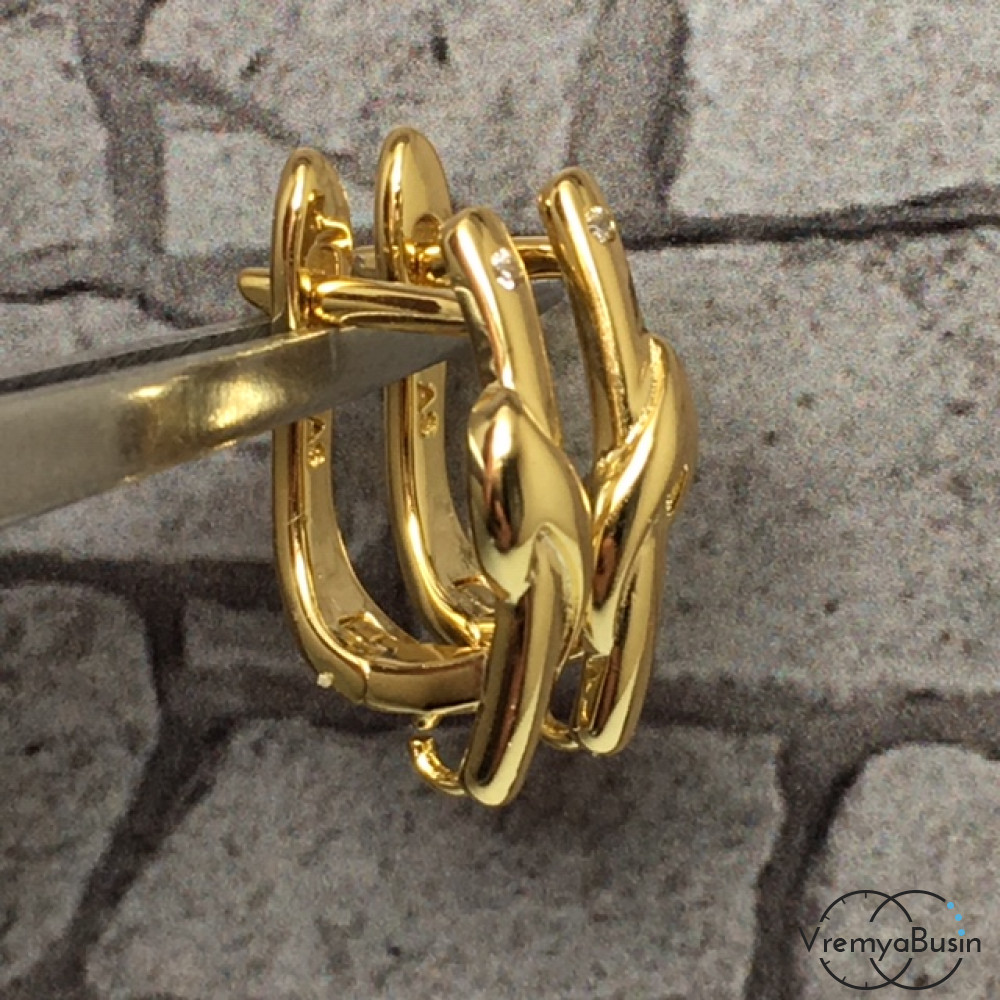 Швензы с английским замком. Латунь с позолотой и фианитами