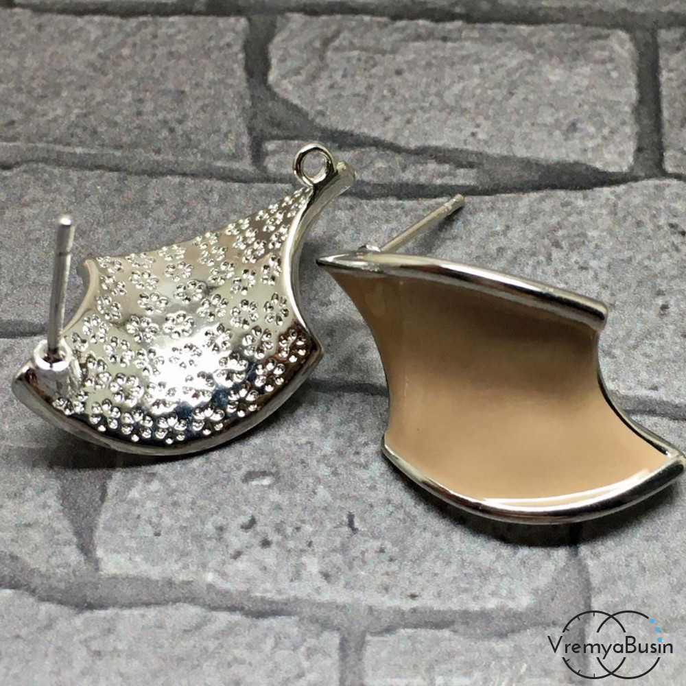 Швензы-гвоздики с эмалью цв. бежевый, латунь с родиевым покрытием (1 пара)
