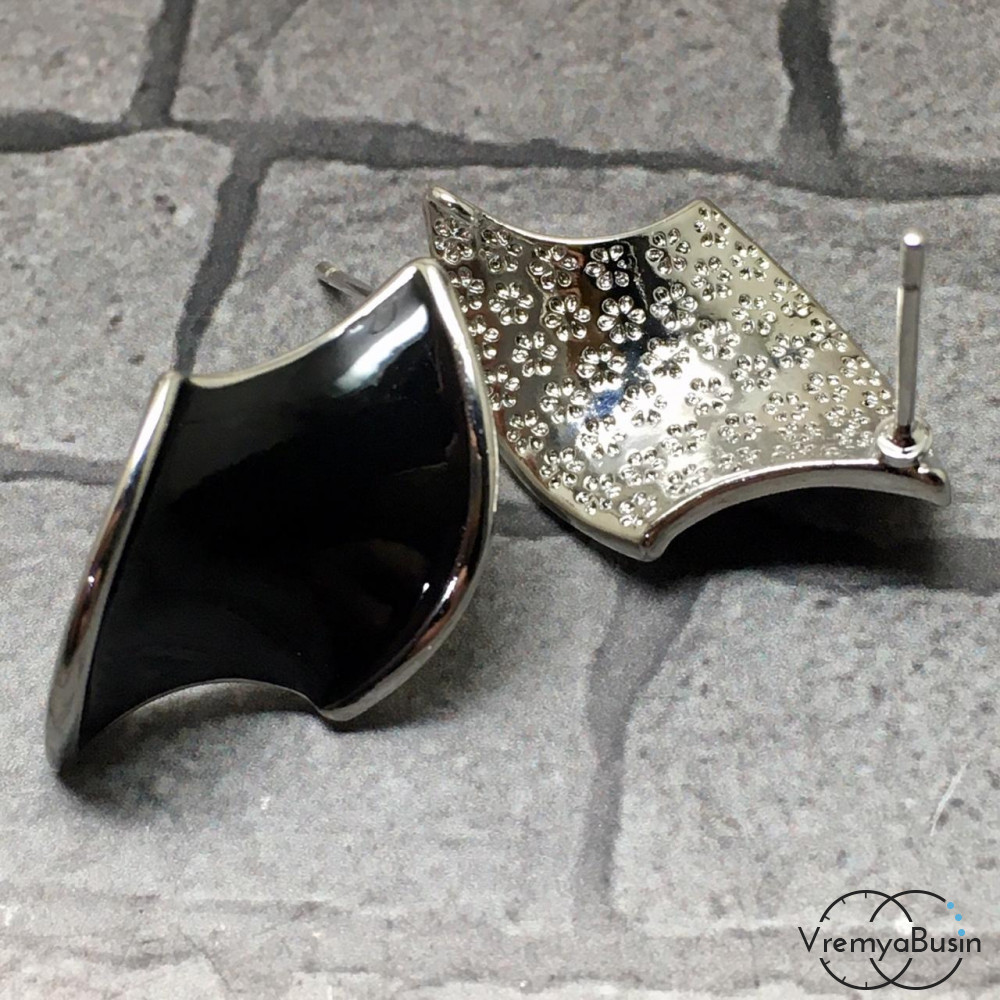 Швензы-гвоздики с эмалью цв. чёрный, латунь с родиевым покрытием (1 пара)