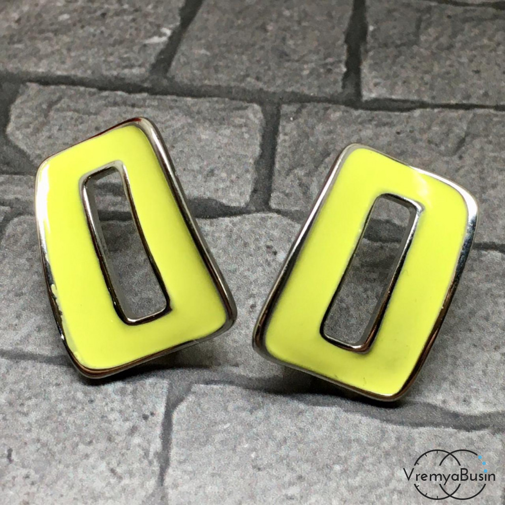 Швензы-гвоздики с эмалью цв. жёлтый, латунь с родиевым покрытием (1 пара)