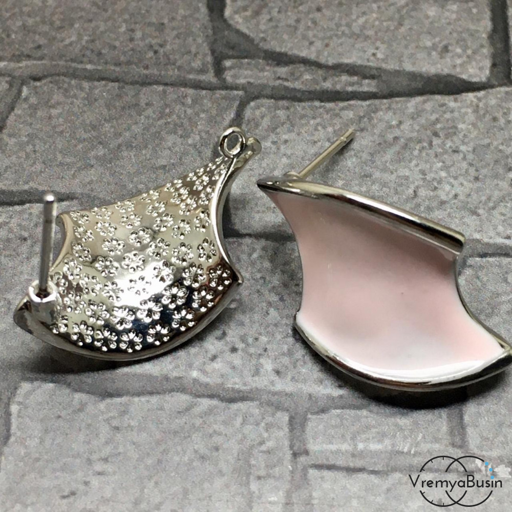 Швензы-гвоздики с эмалью цв. розовый, латунь с родиевым покрытием (1 пара)