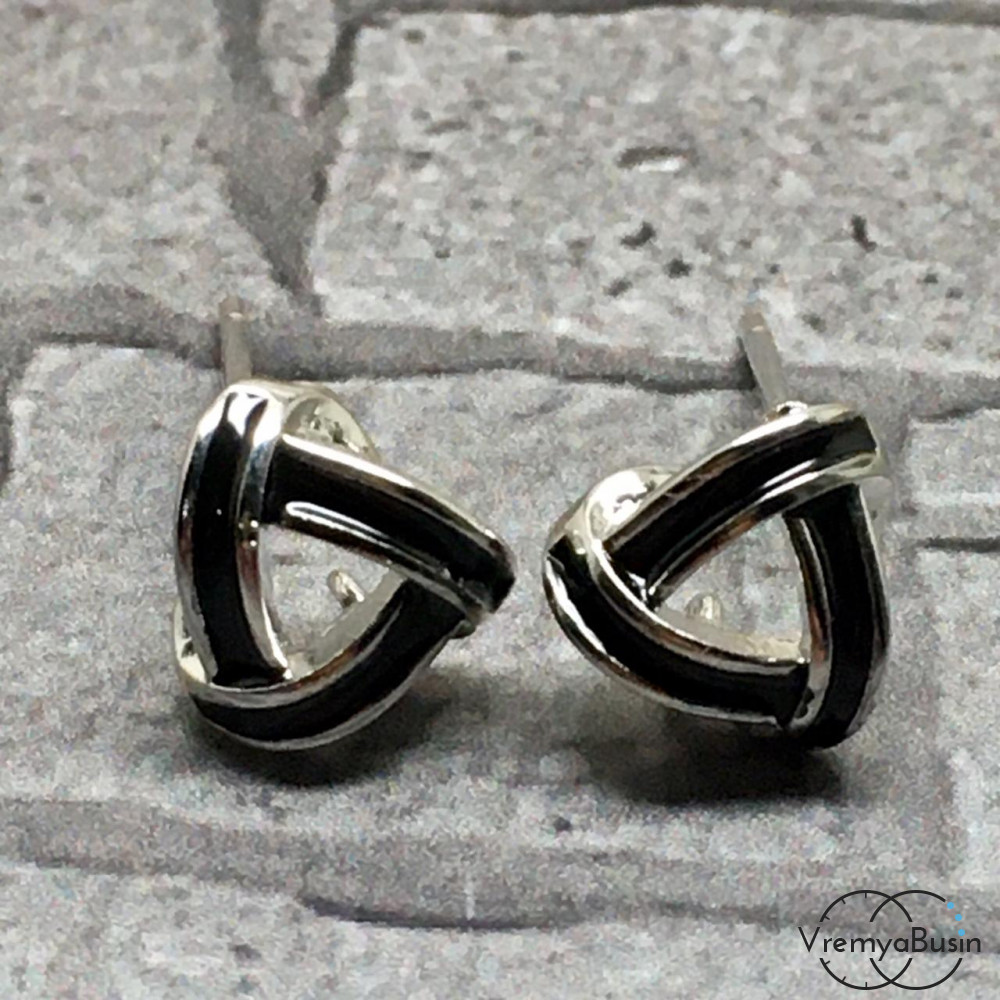 Швензы-гвоздики с эмалью цв. чёрный, латунь с родиевым покрытием (1 пара)