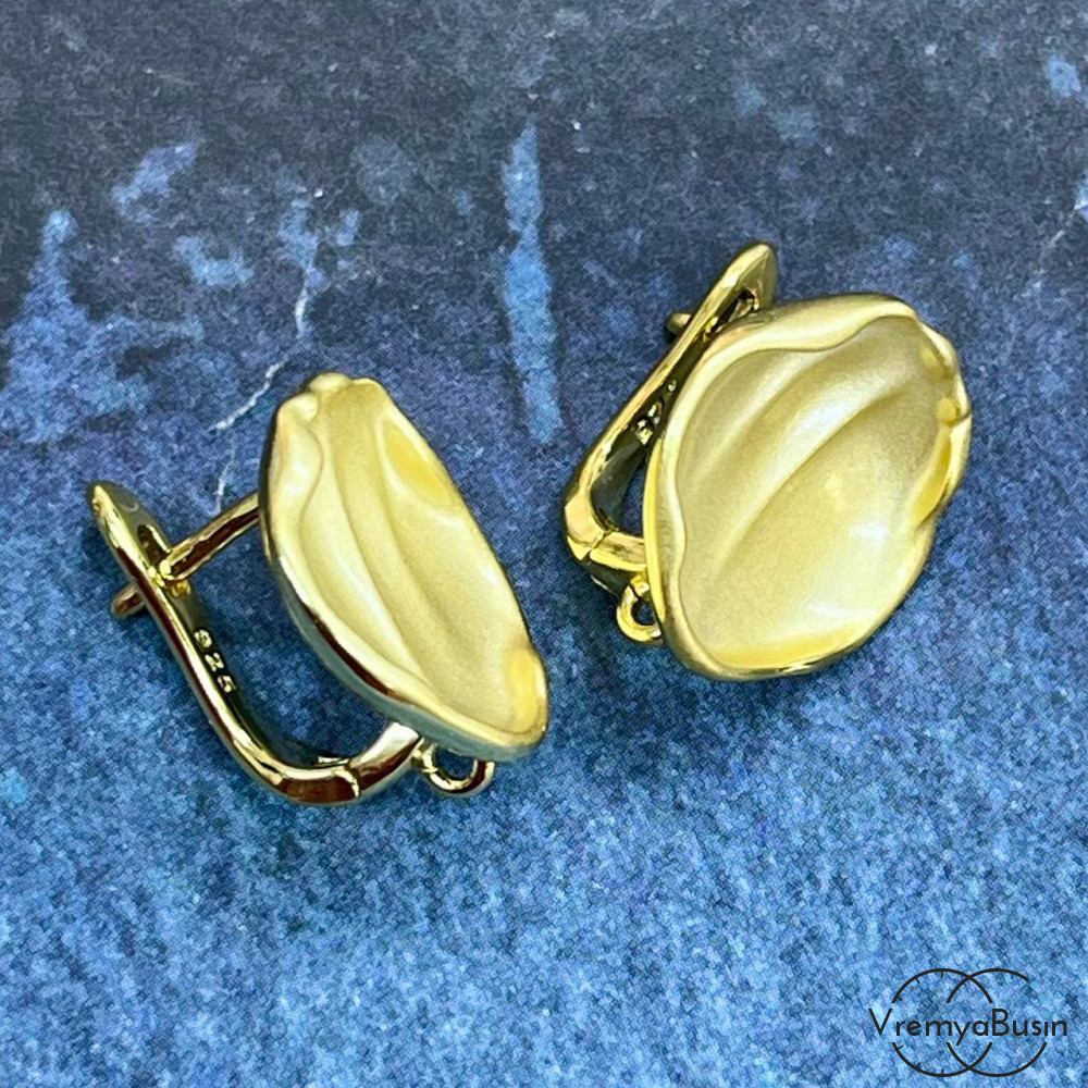 Швензы с эмалью и с английским замком, 17х16 мм, латунь с позолотой (1 пара)