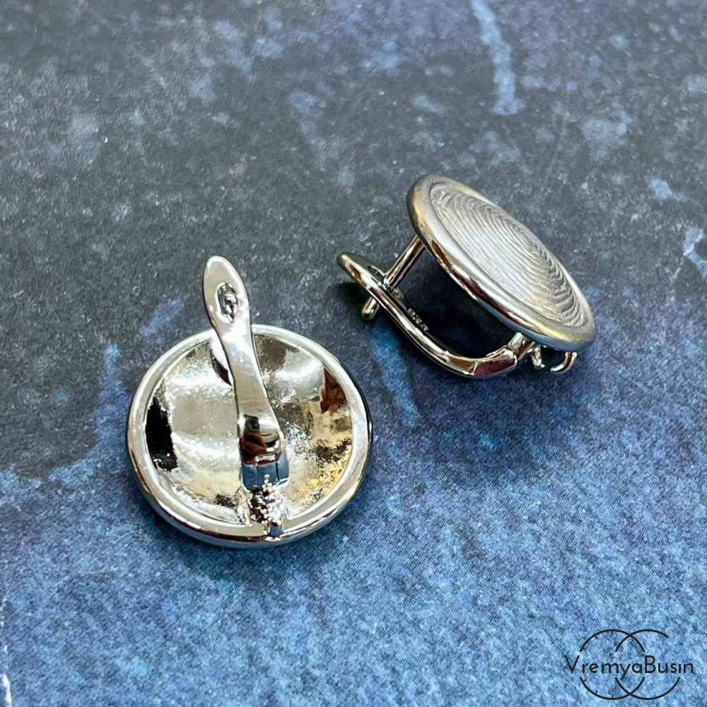 Швензы с эмалью и с английским замком, 17х17 мм, латунь с родиевым покрытием (1 пара)